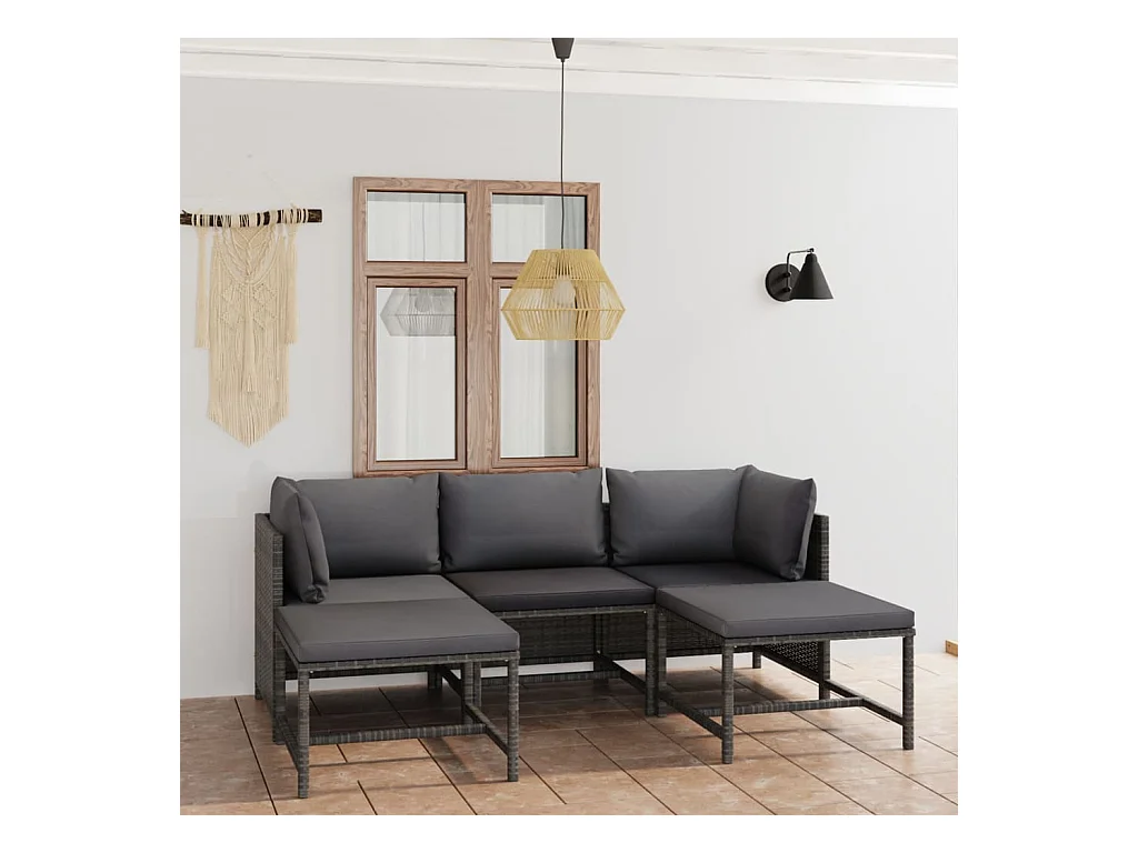 5-tlg. Garten-Sitzgruppe: Sofa + Tisch | Garten-Lounge-Set mit Kissen Poly Rattan Grau -GKD136922