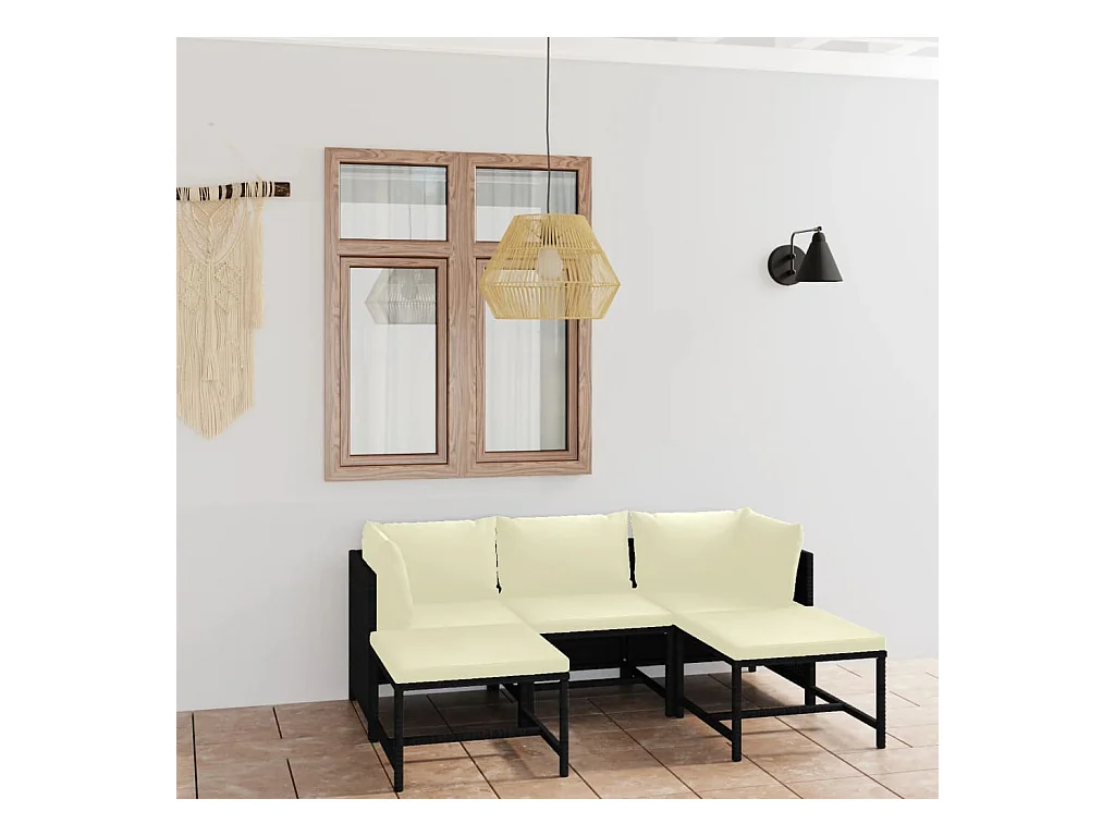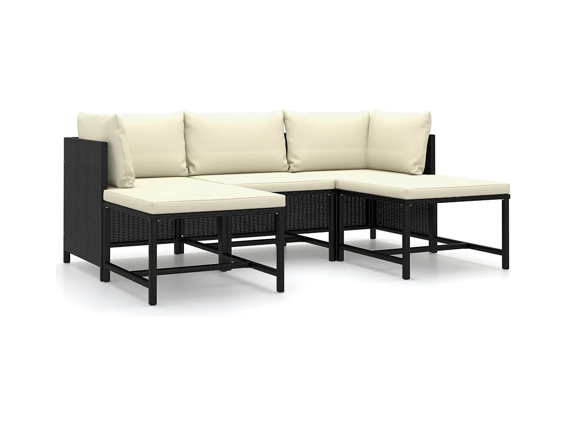 5-tlg. Garten-Sitzgruppe: Sofa + Tisch | Garten-Lounge-Set mit Kissen Poly Rattan Schwarz -GKD172917