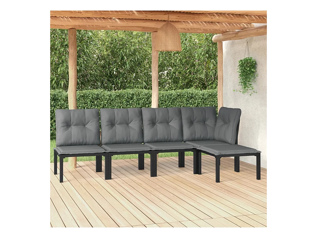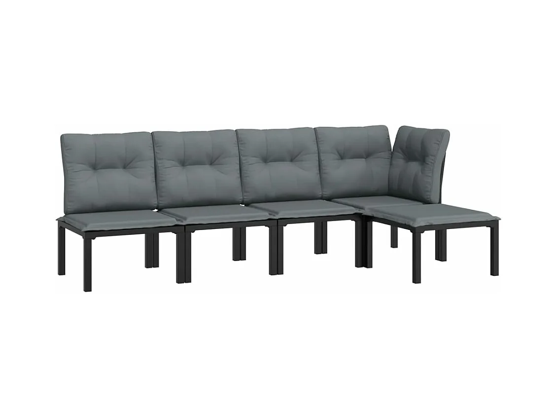 5-tlg. Garten-Sitzgruppe: Sofa + Tisch | Garten-Lounge-Set Schwarz und Grau Poly Rattan -GKD102215