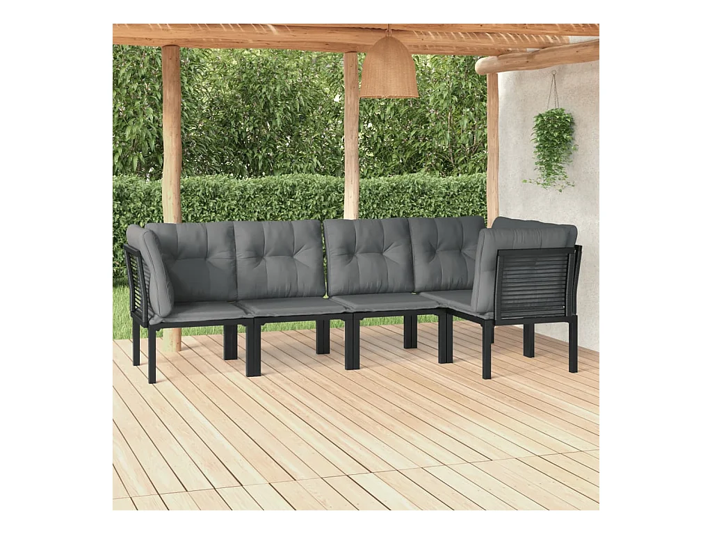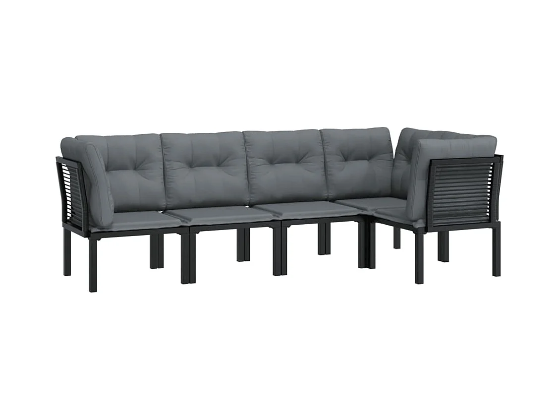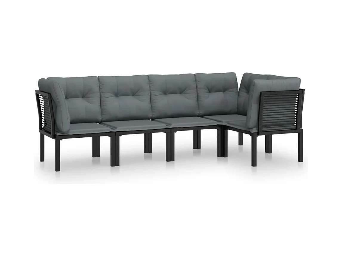 5-tlg. Garten-Sitzgruppe: Sofa + Tisch | Garten-Lounge-Set Schwarz und Grau Poly Rattan -GKD281443