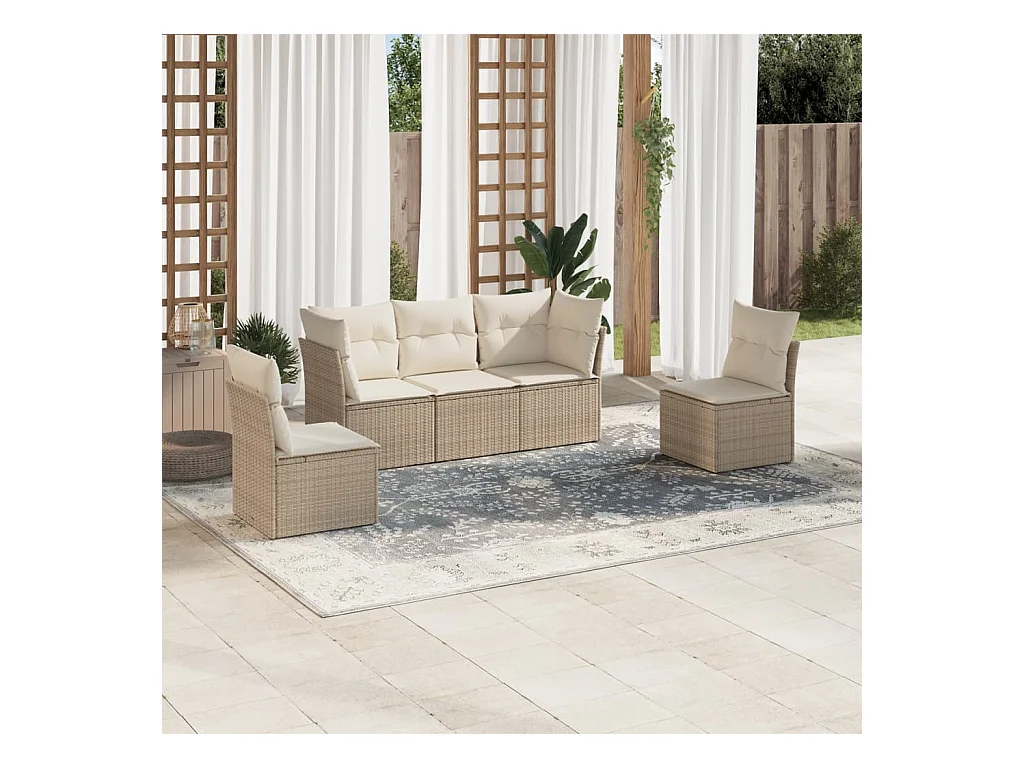 5-tlg. Garten-Sofagarnitur,Gartenmöbel-Set mit Kissen Beige Poly Rattan -gkd631027