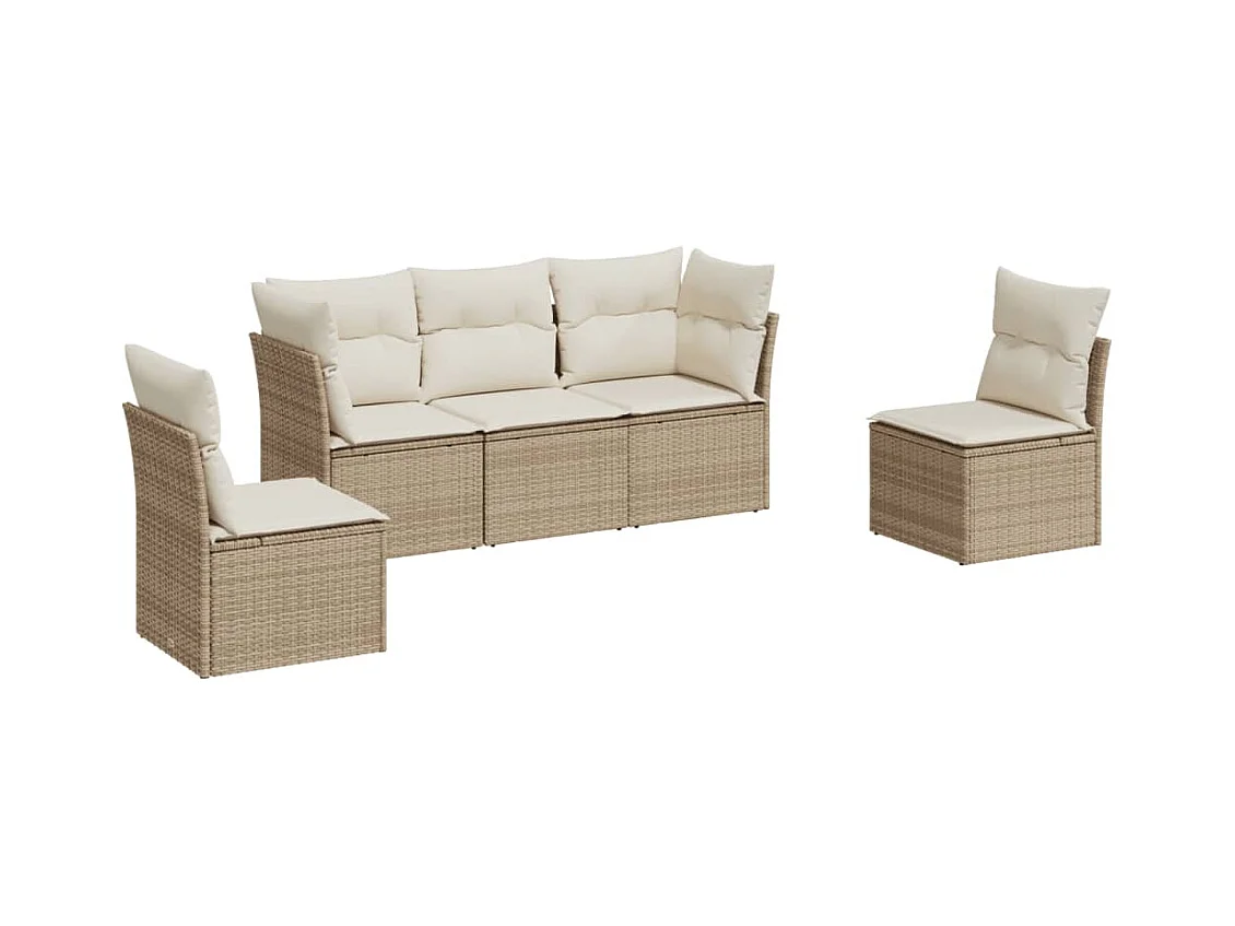 5-tlg. Garten-Sofagarnitur,Gartenmöbel-Set mit Kissen Beige Poly Rattan -gkd668334