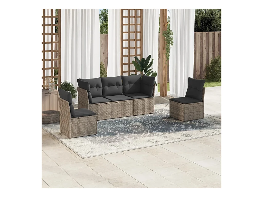 5-tlg. Garten-Sofagarnitur,Gartenmöbel-Set mit Kissen Grau Poly Rattan -gkd477025