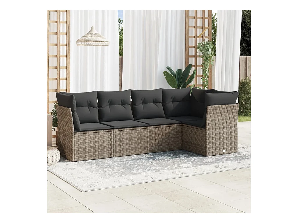 5-tlg. Garten-Sofagarnitur,Gartenmöbel-Set mit Kissen Grau Poly Rattan -gkd712179