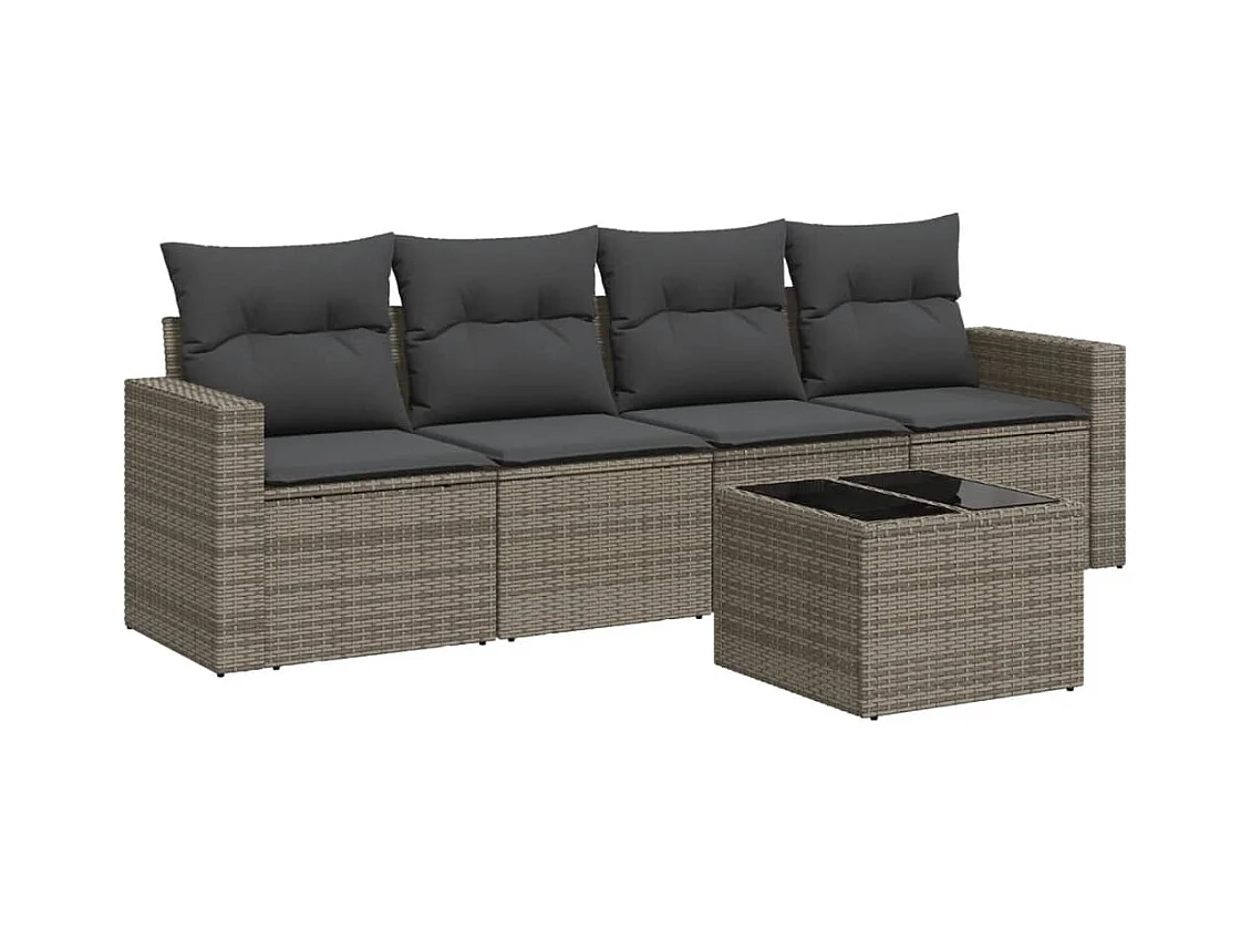 5-tlg. Garten-Sofagarnitur,Gartenmöbel-Set mit Kissen Grau Poly Rattan -gkd737922