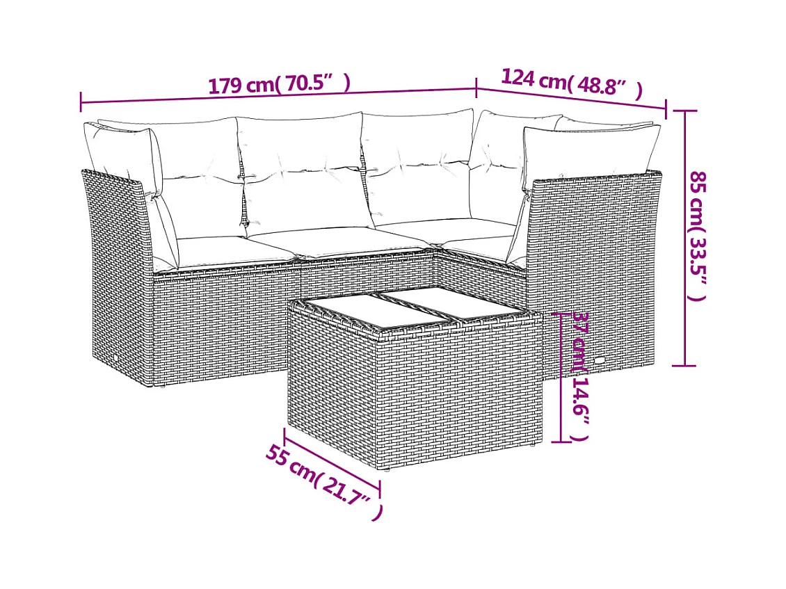 5-tlg. Garten-Sofagarnitur,Gartenmöbel-Set mit Kissen Grau Poly Rattan -gkd875308