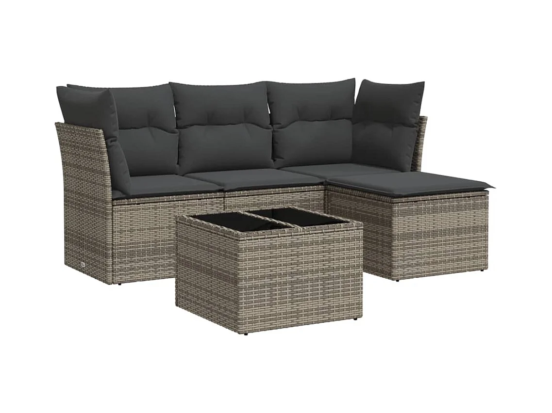 5-tlg. Garten-Sofagarnitur,Gartenmöbel-Set mit Kissen Grau Poly Rattan -gkd914722