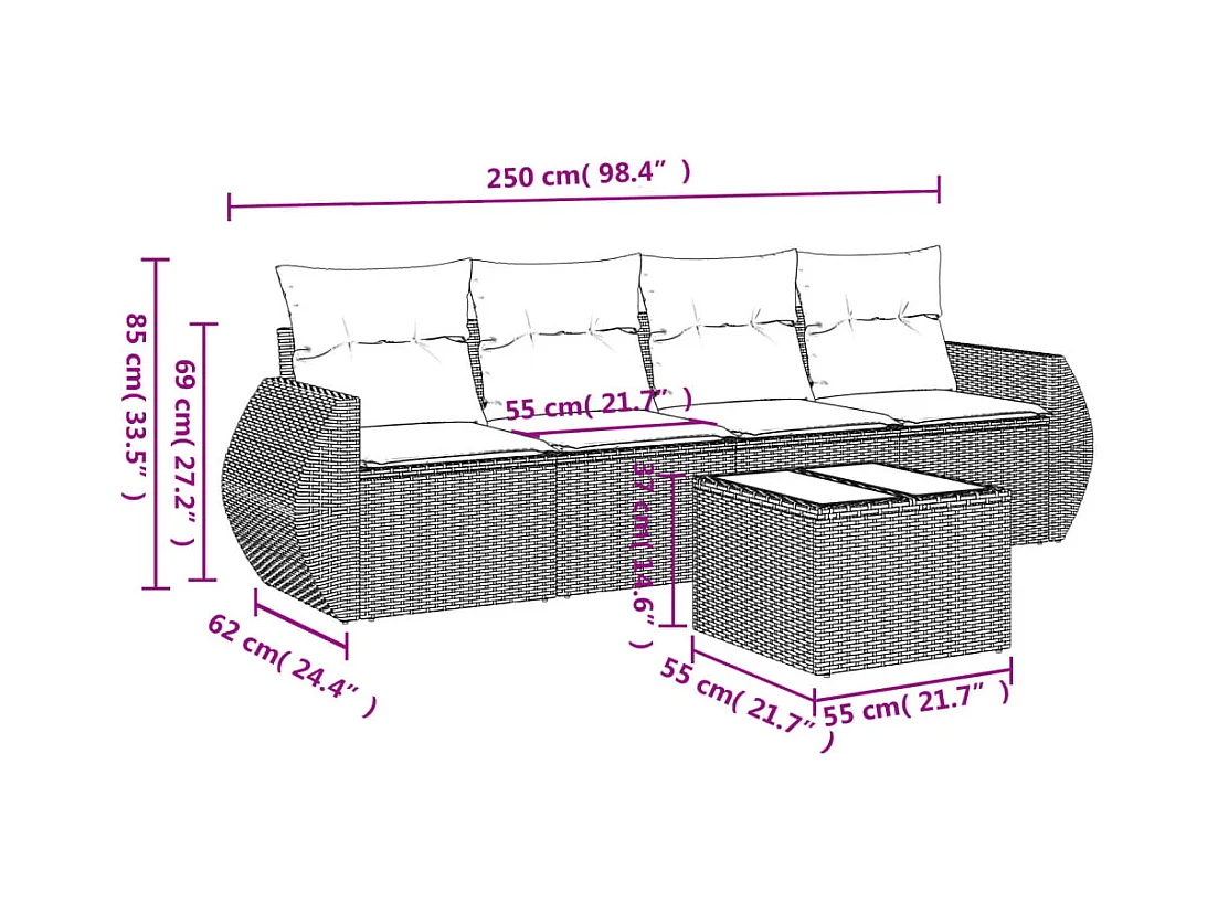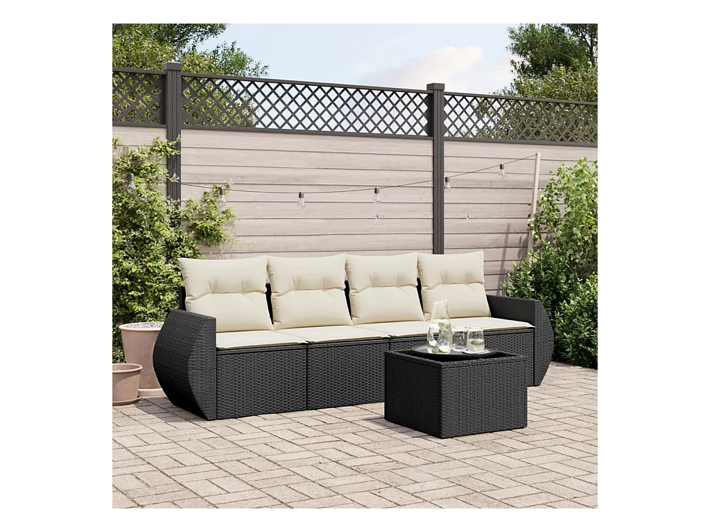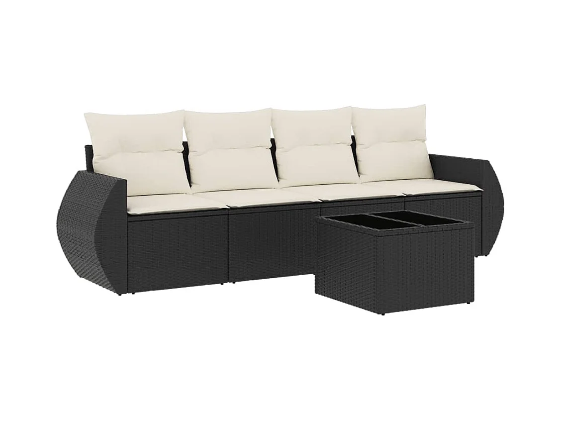 5-tlg. Garten-Sofagarnitur,Gartenmöbel-Set mit Kissen Schwarz Poly Rattan -gkd580074