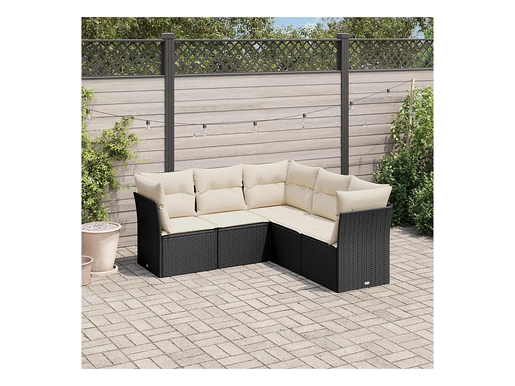 5-tlg. Garten-Sofagarnitur,Gartenmöbel-Set mit Kissen Schwarz Poly Rattan -gkd740476