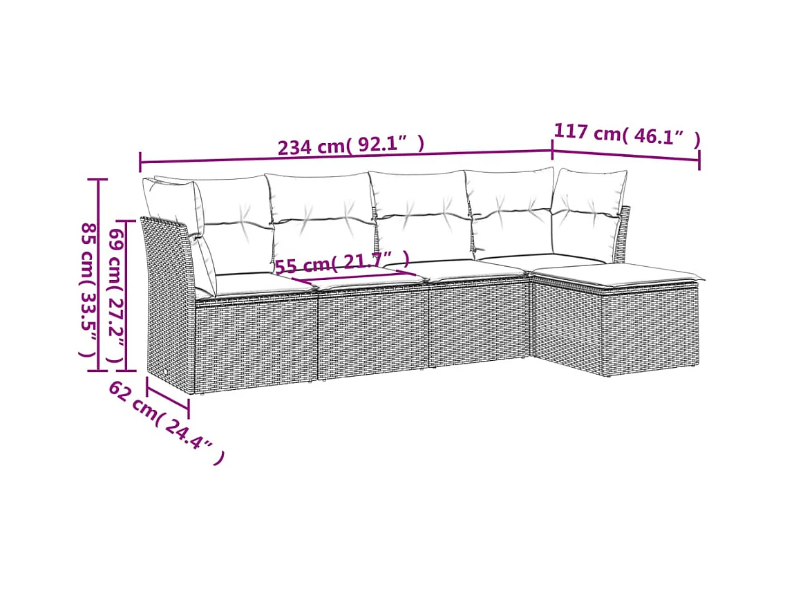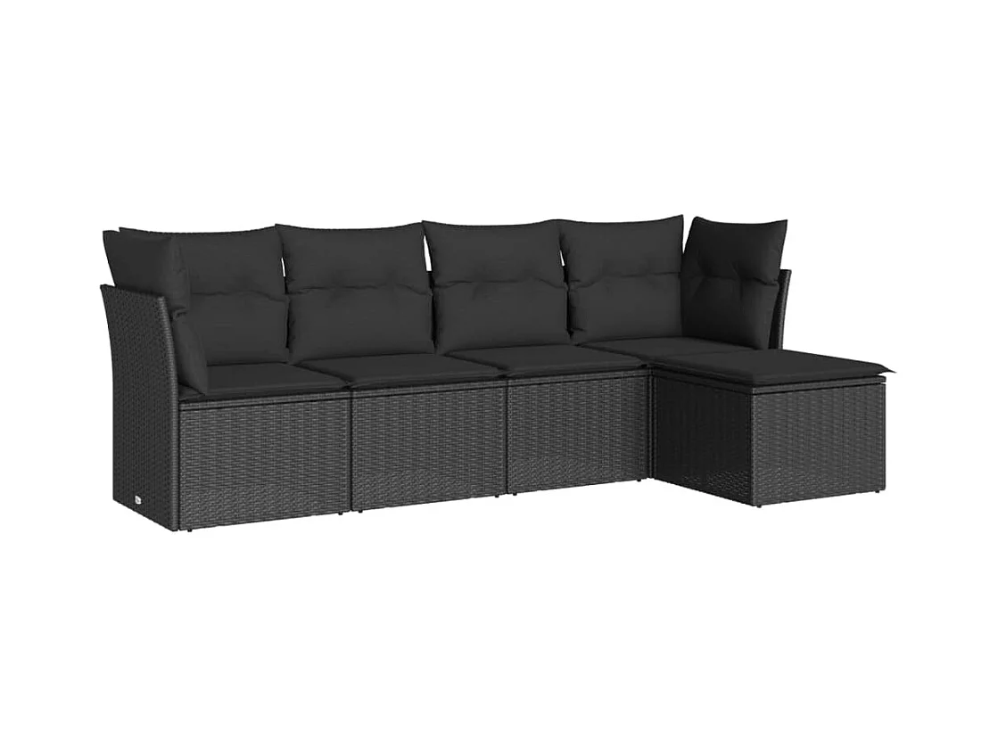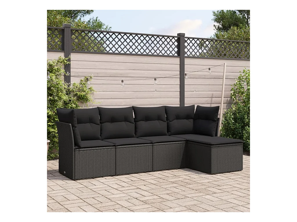 5-tlg. Garten-Sofagarnitur,Gartenmöbel-Set mit Kissen Schwarz Poly Rattan -gkd883901