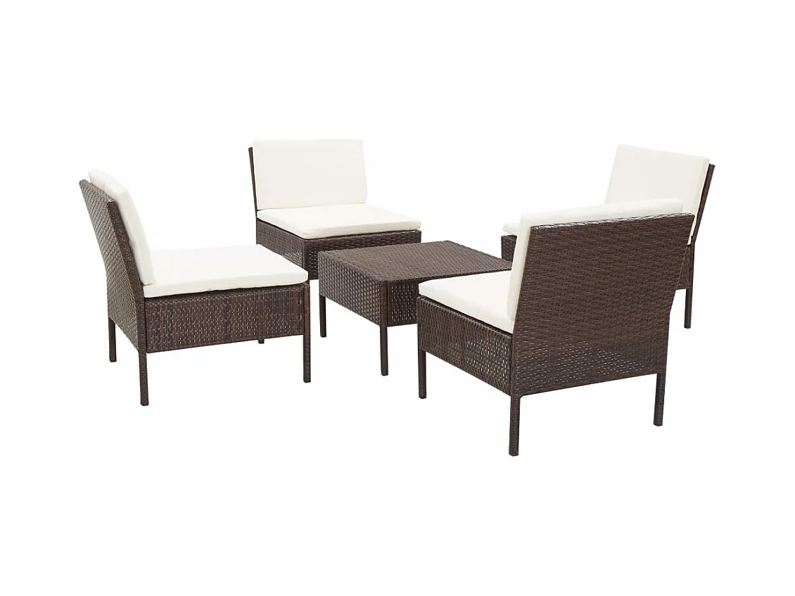 5-tlg. Garten-Sofagarnitur mit Auflagen Poly Rattan Braun