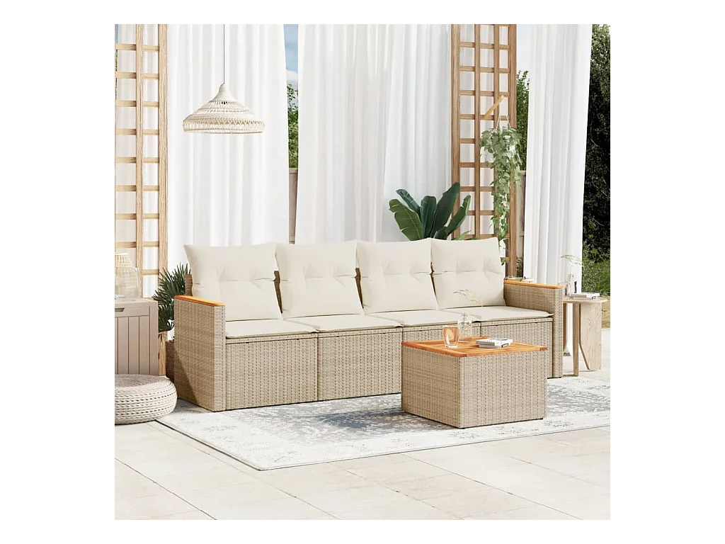 5-tlg. Garten-Sofagarnitur mit Kissen Beige Poly Rattan