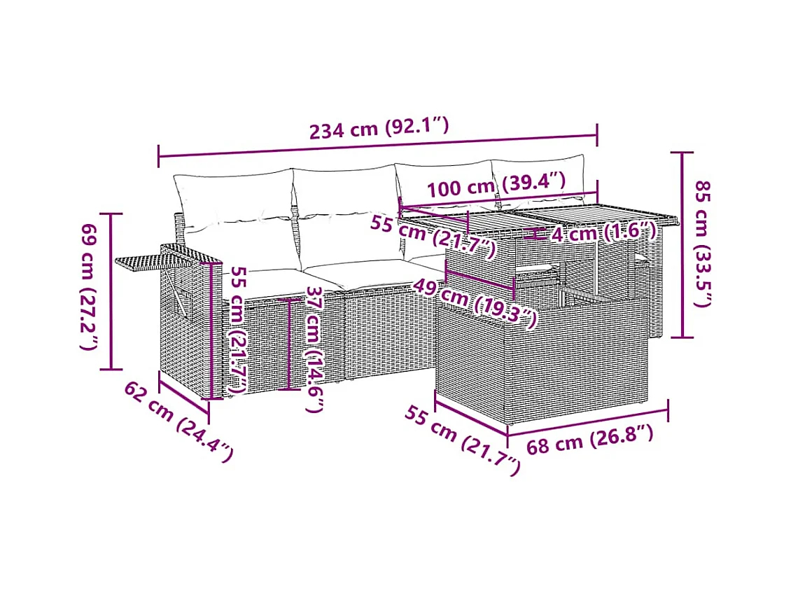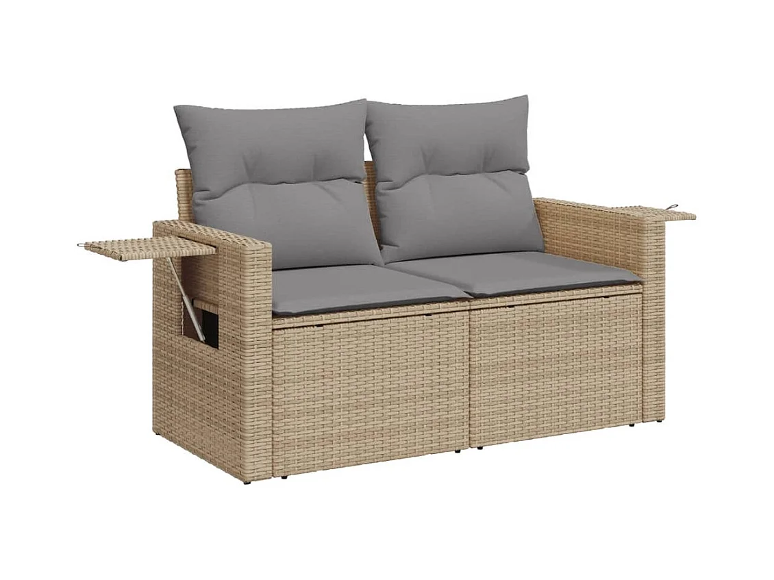 5-tlg. Garten-Sofagarnitur mit Kissen Beige Poly Rattan