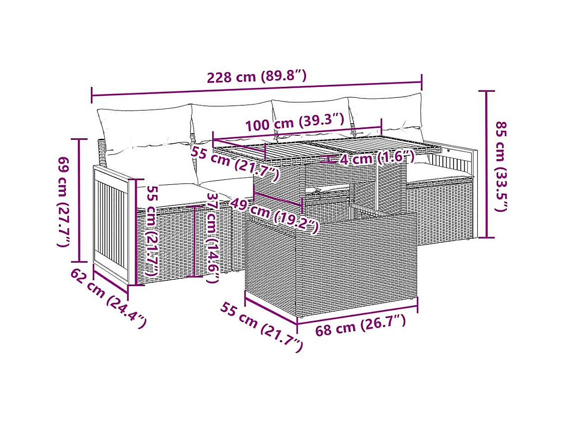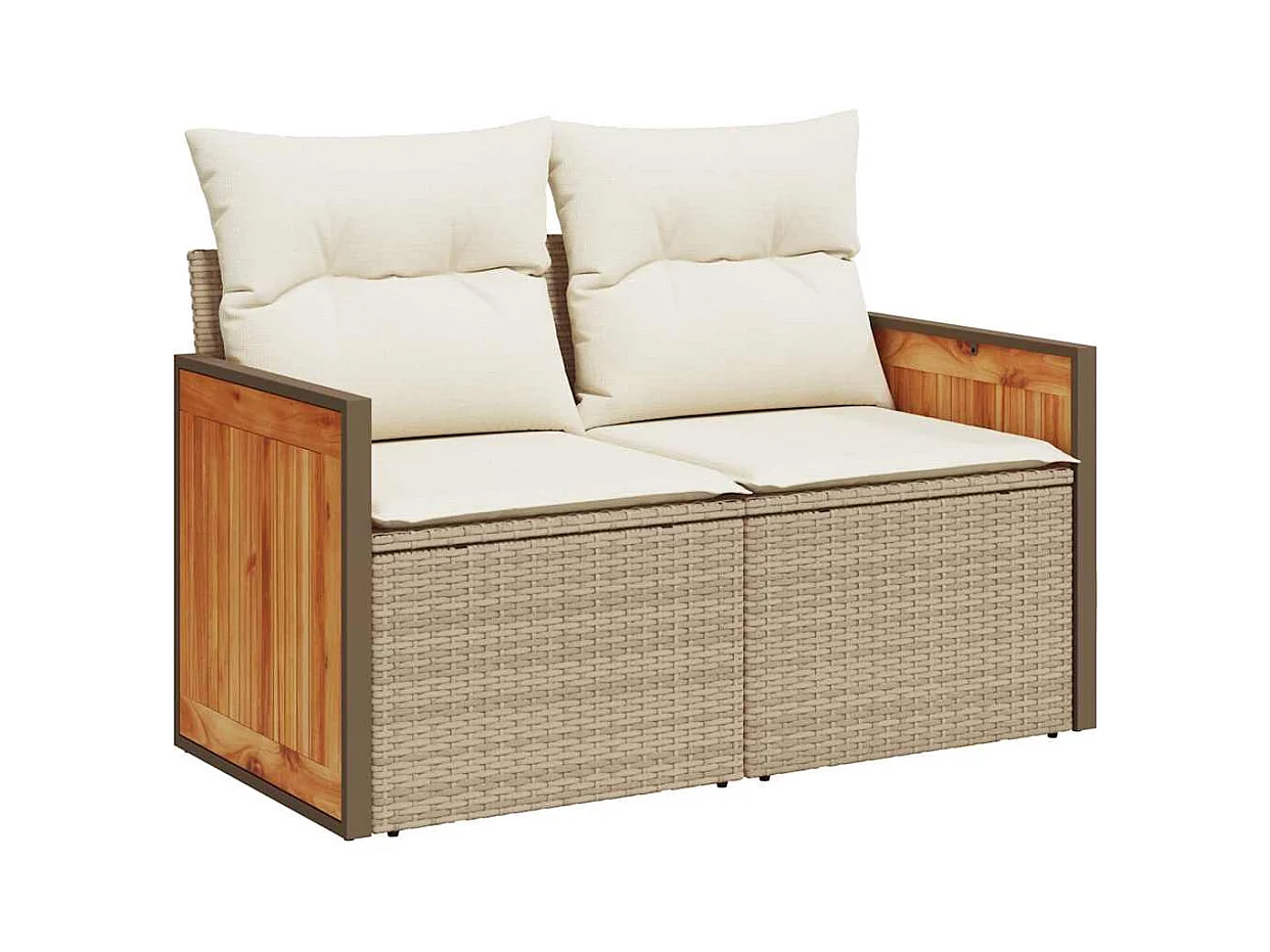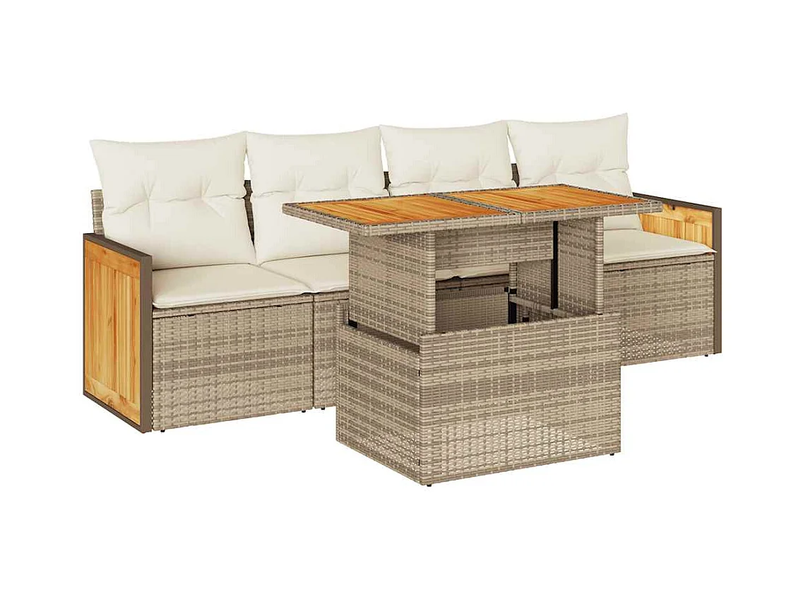 5-tlg. Garten-Sofagarnitur mit Kissen Beige Poly Rattan Akazie