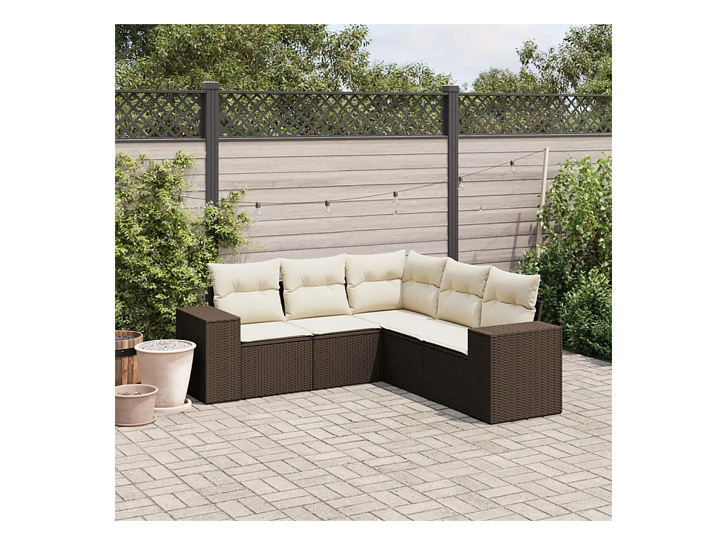 5-tlg. Garten-Sofagarnitur mit Kissen Braun Poly Rattan