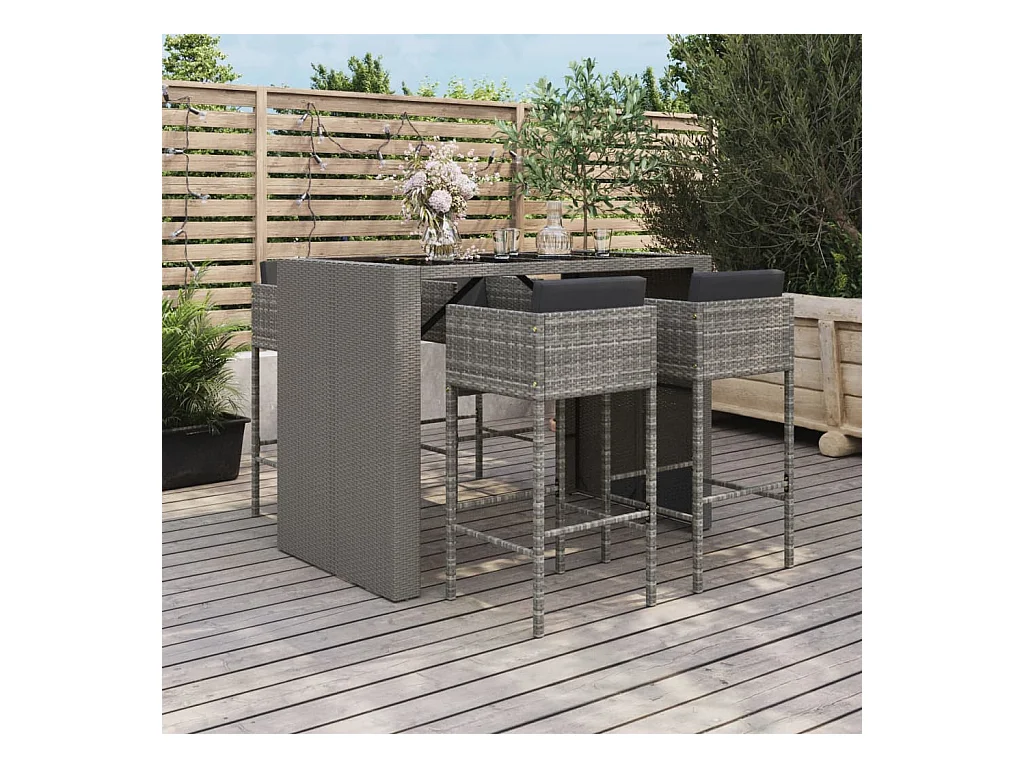 5-tlg. Gartenbar-Set mit Kissen Grau Poly Rattan