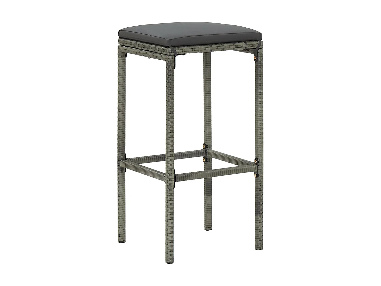 5-tlg. Gartenbar-Set mit Kissen Poly Rattan Grau