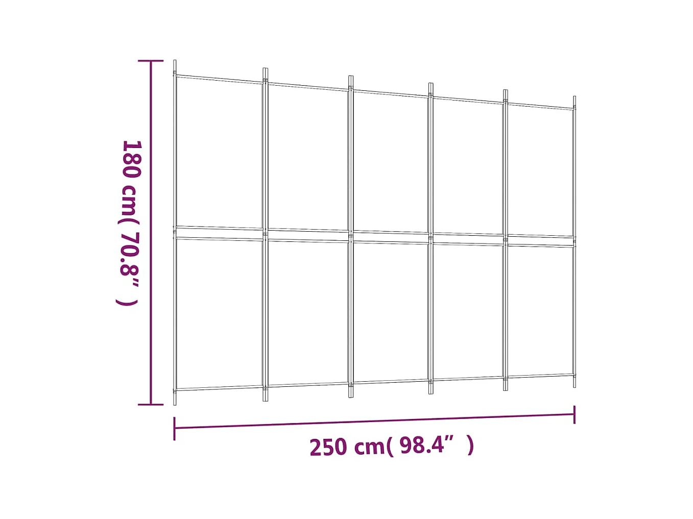 5-tlg. Paravent Weiß 250x180 cm Stoff
