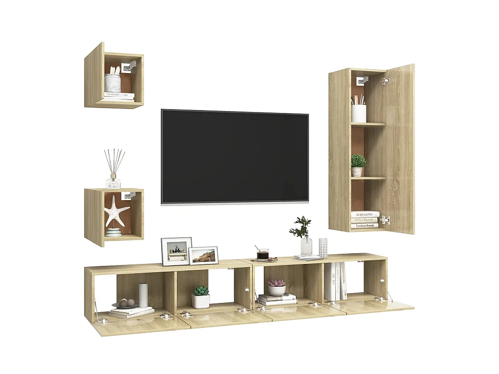 5-tlg. TV-Schrank-Set,TV-Möbel Sonoma-Eiche Holzwerkstoff -gkd91549