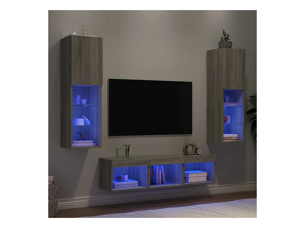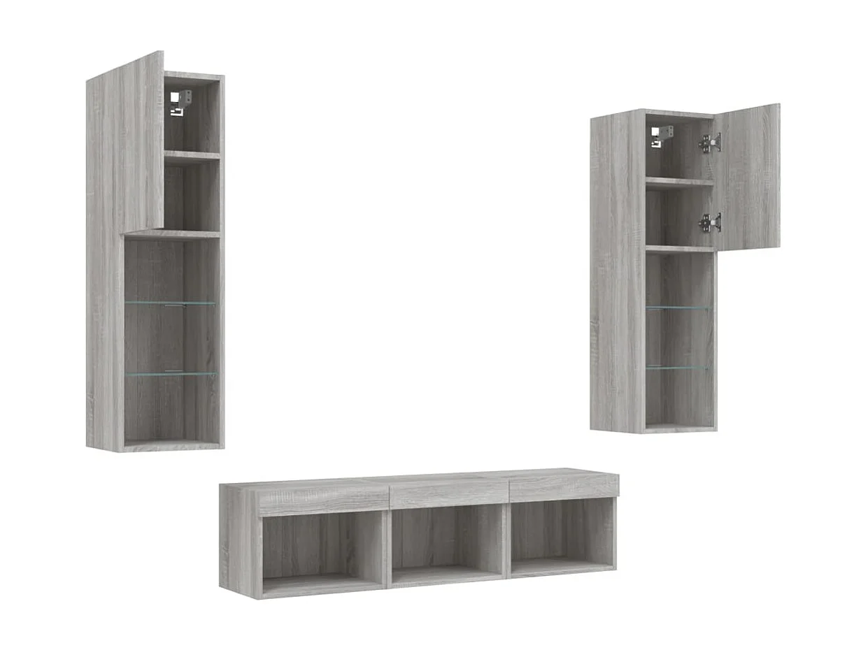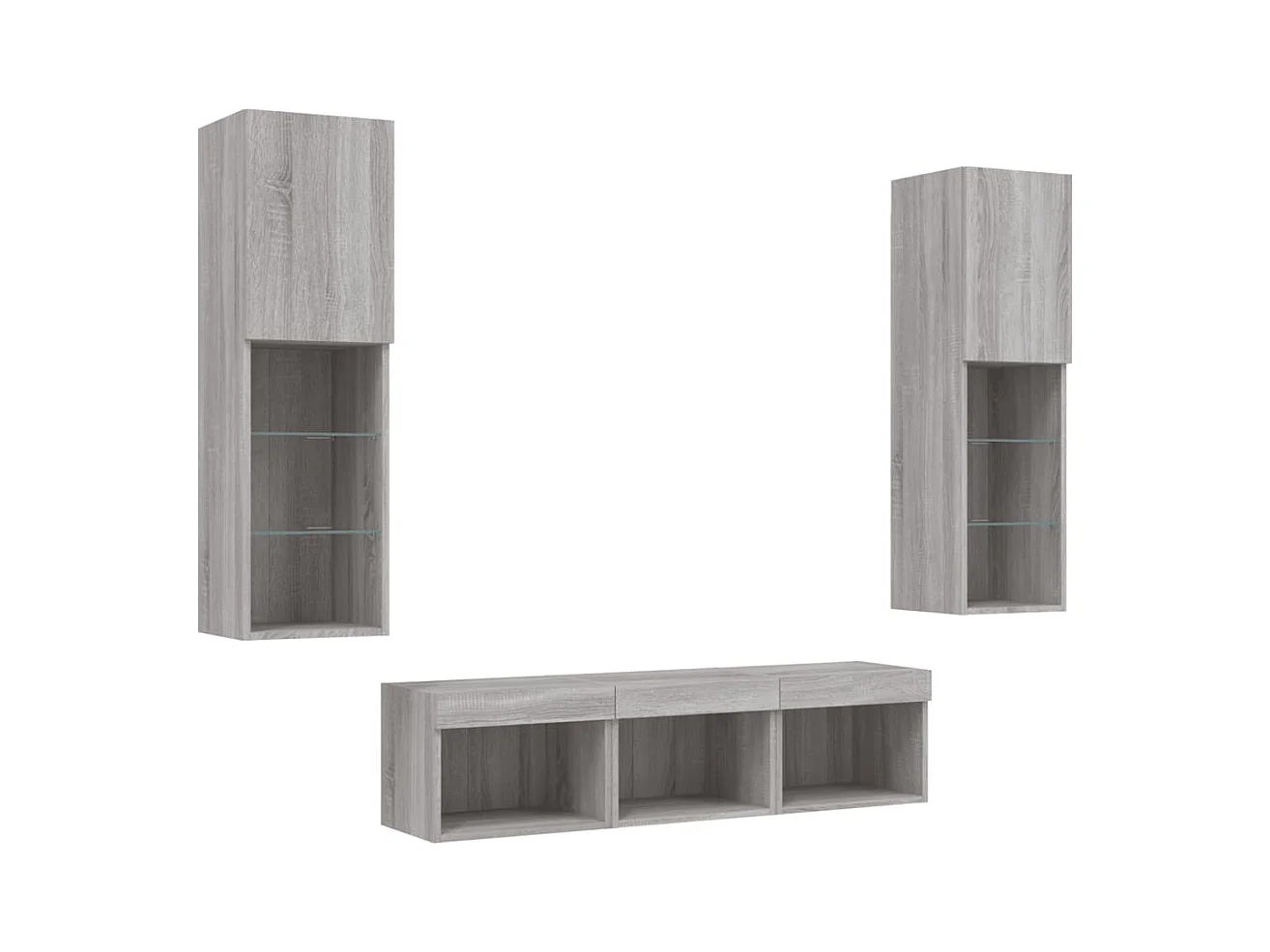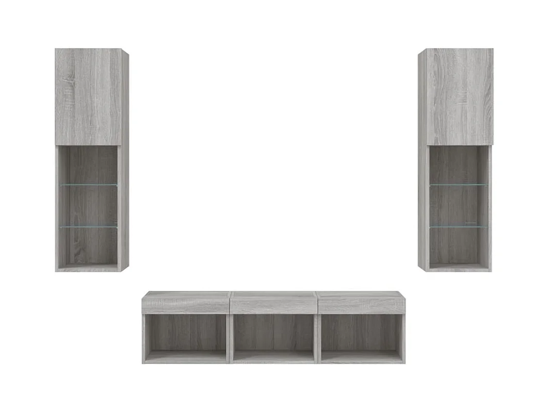 5-tlg. Wohnwand mit LED-Beleuchtung Grau Sonoma Holzwerkstoff