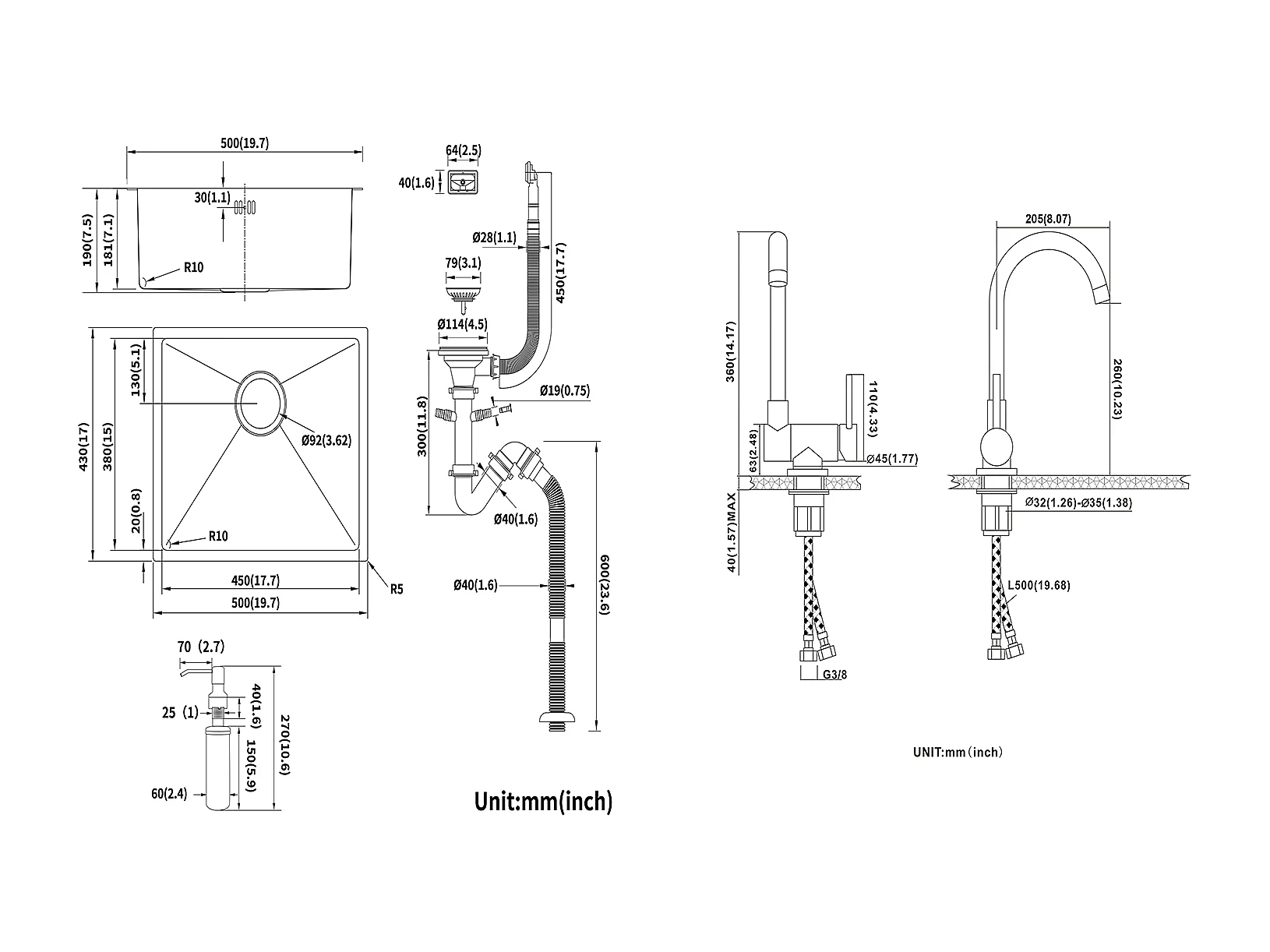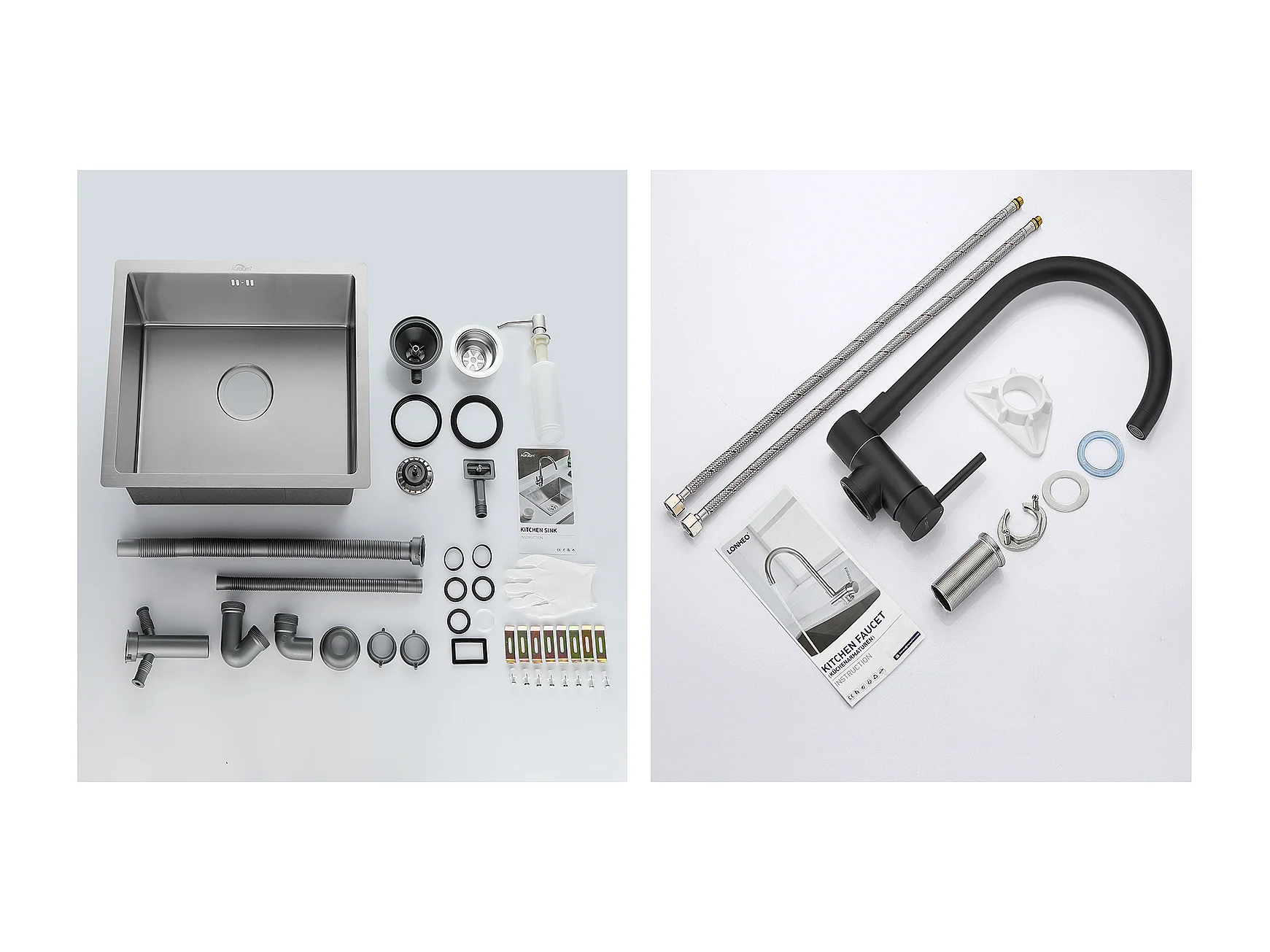 50*43*18CM Einzelbecken Edelstahl-Küchenspüle mit Seifenspender + Küchenmischbatterie aus Edelstahl 304, 360° schwenkbar, Schwarz