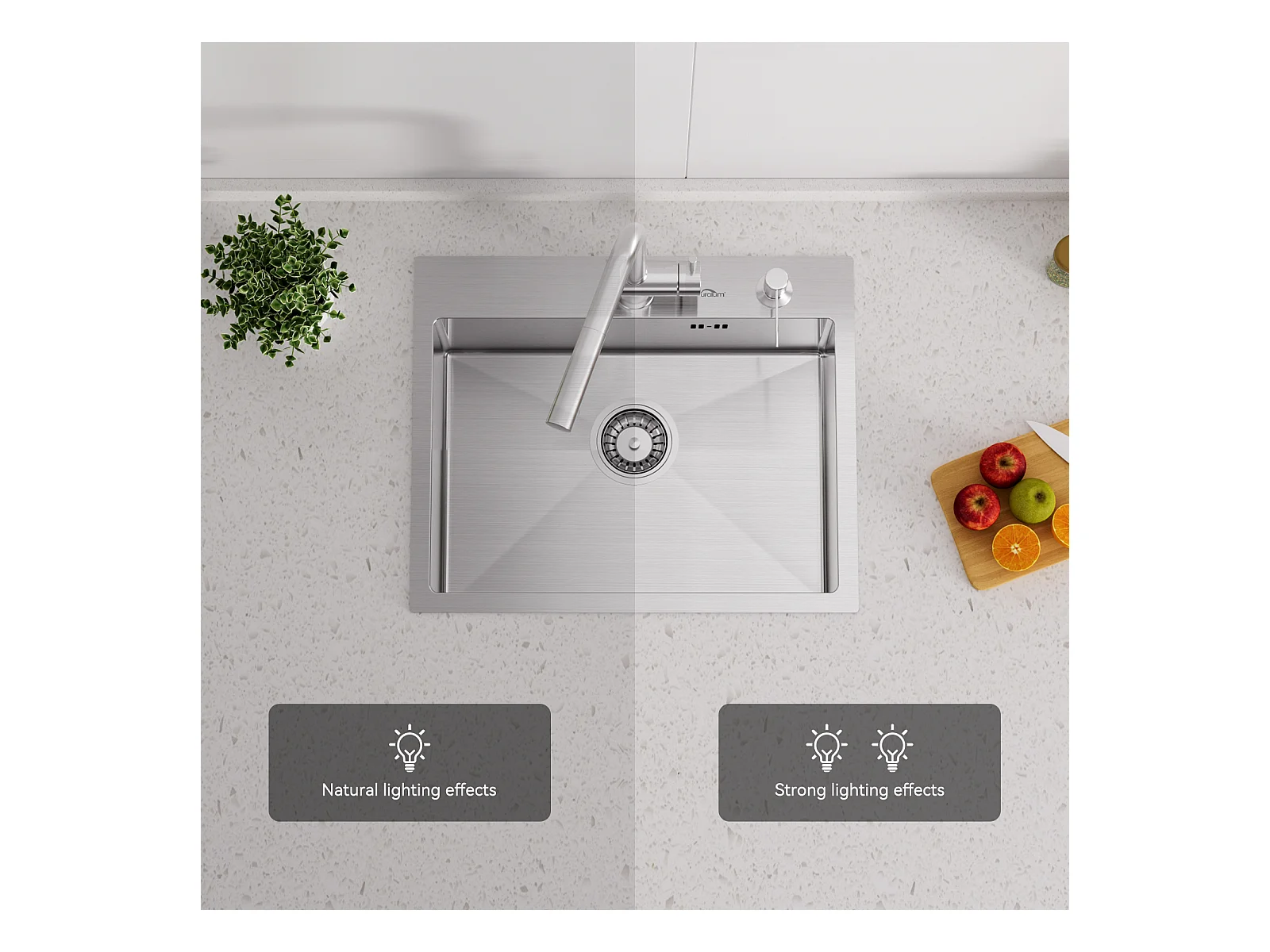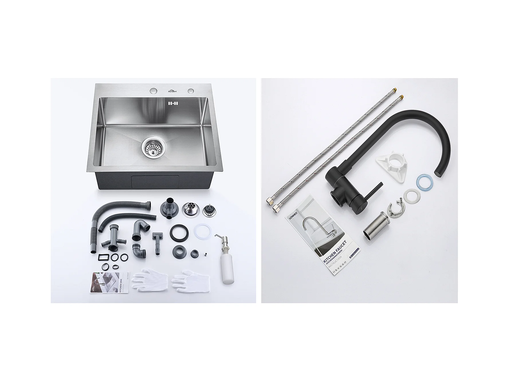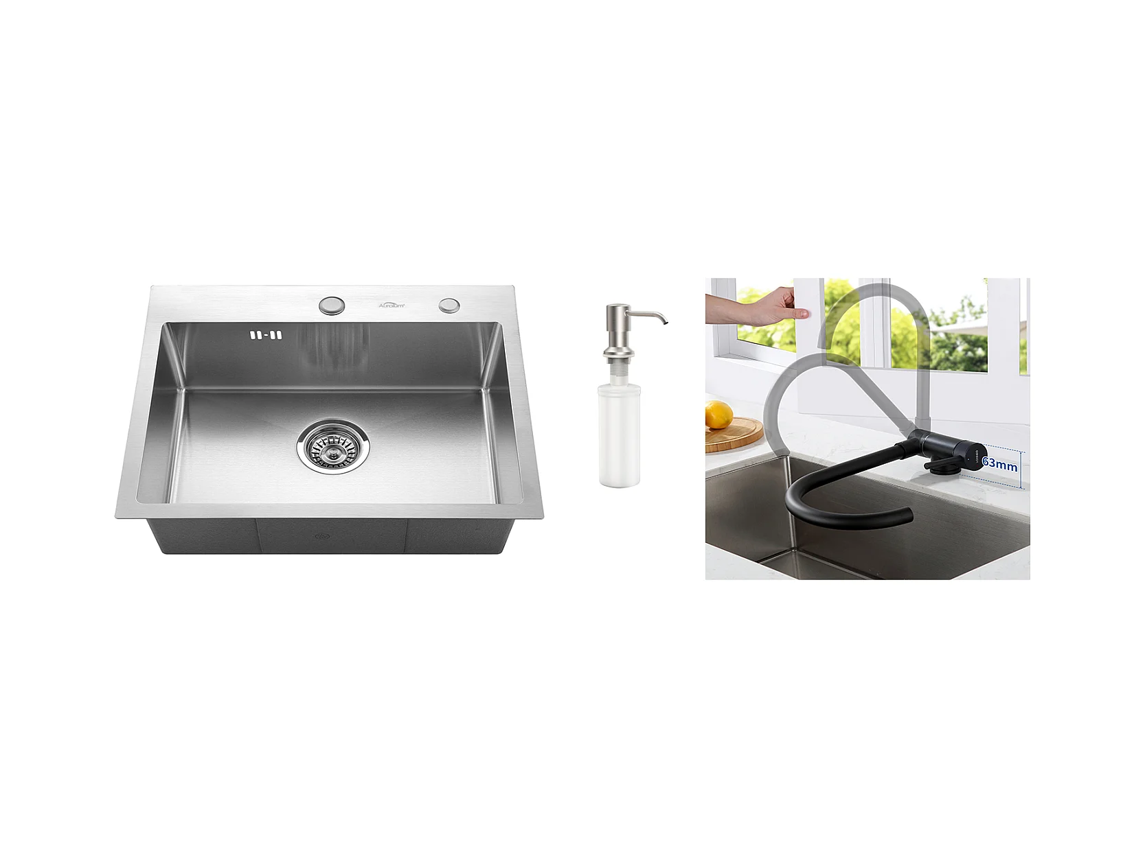 55 x 45 cm Einzelbecken-Küchenspüle, Unterbau-/Aufsatzspüle mit Seifenspender + Küchenmischbatterie aus Edelstahl 304, 360° schwenkbar, EU-Modell