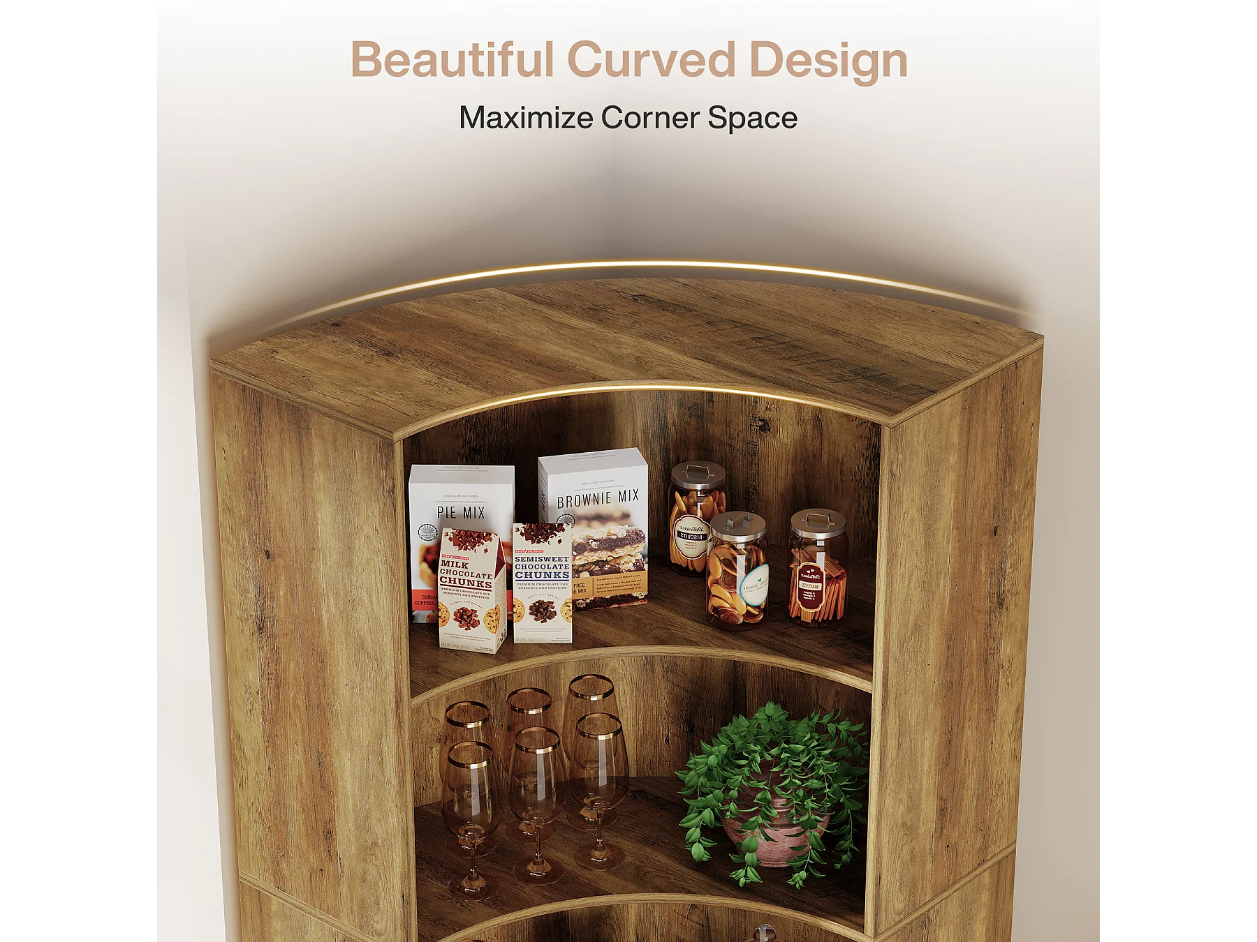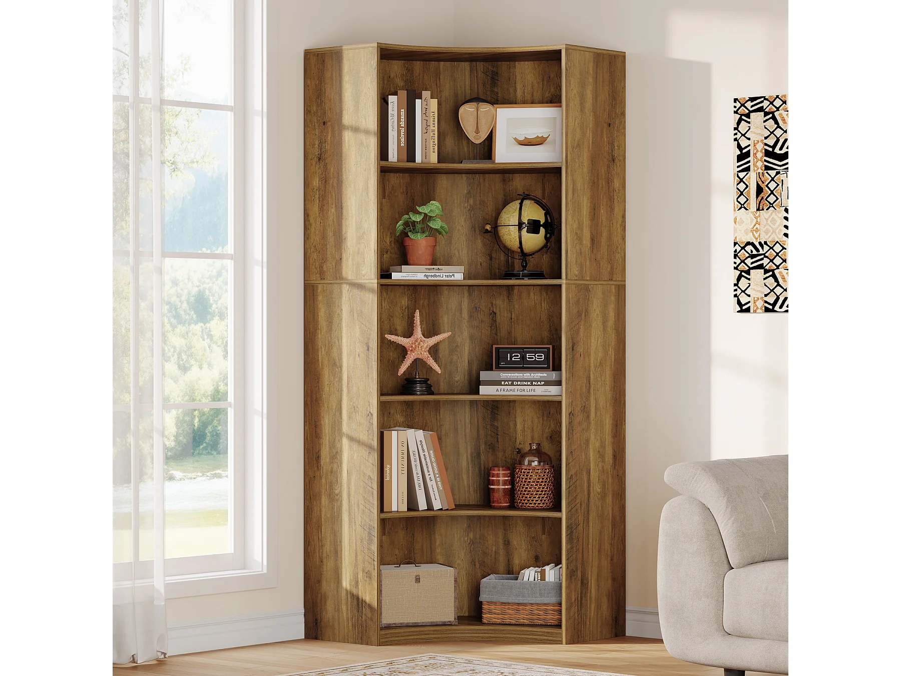 6-Etagen-Eckregal, 180 cm hohes Eckregal mit abgerundeten Kanten, Landhaus-Eckregal für Wohnzimmer, Schlafzimmer, Küche