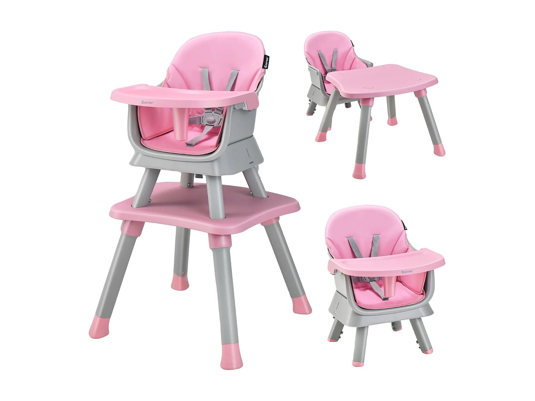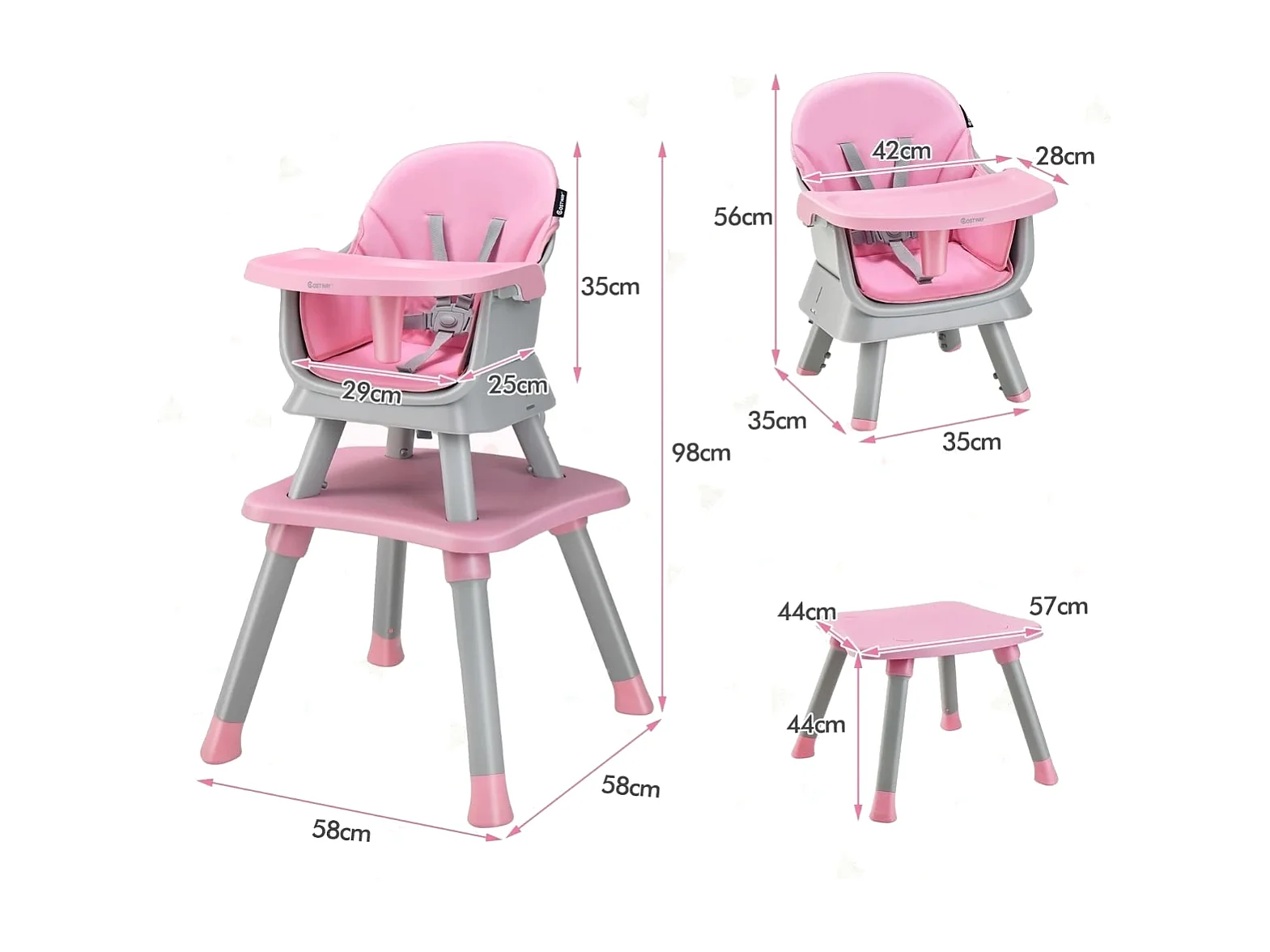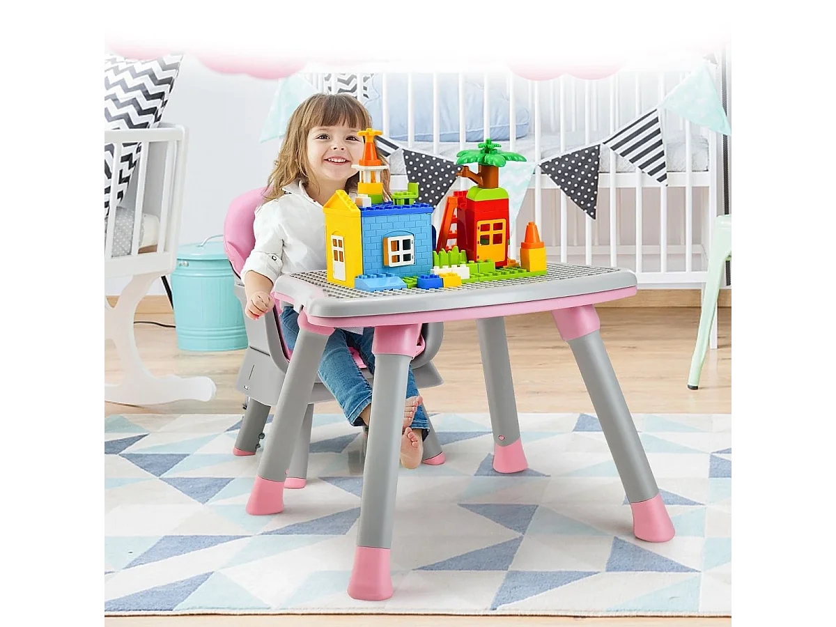 6-in-1 Babyhochstuhl Hochstuhl & Essstuhl & Lerntisch & Bausteintisch 58 x 58 x 98 cm Rosa