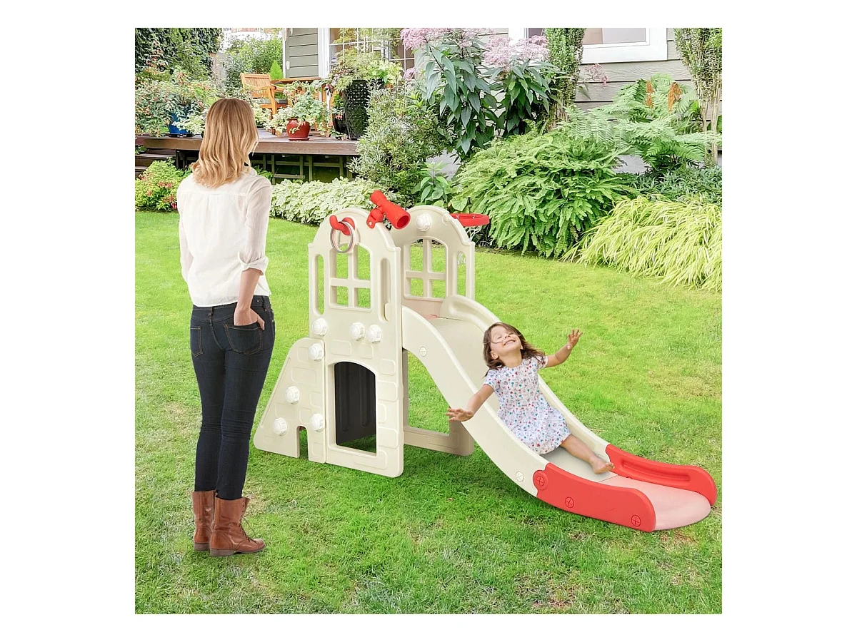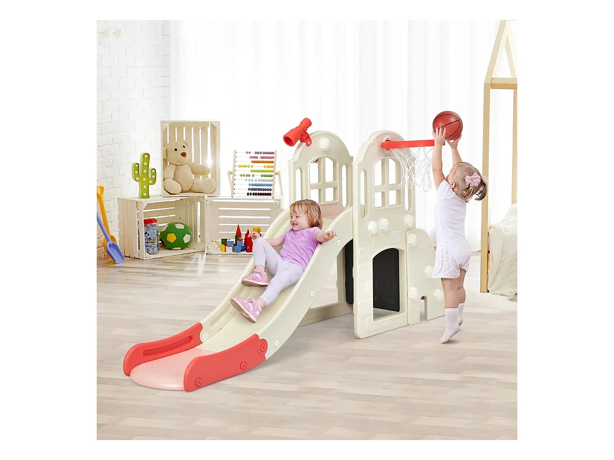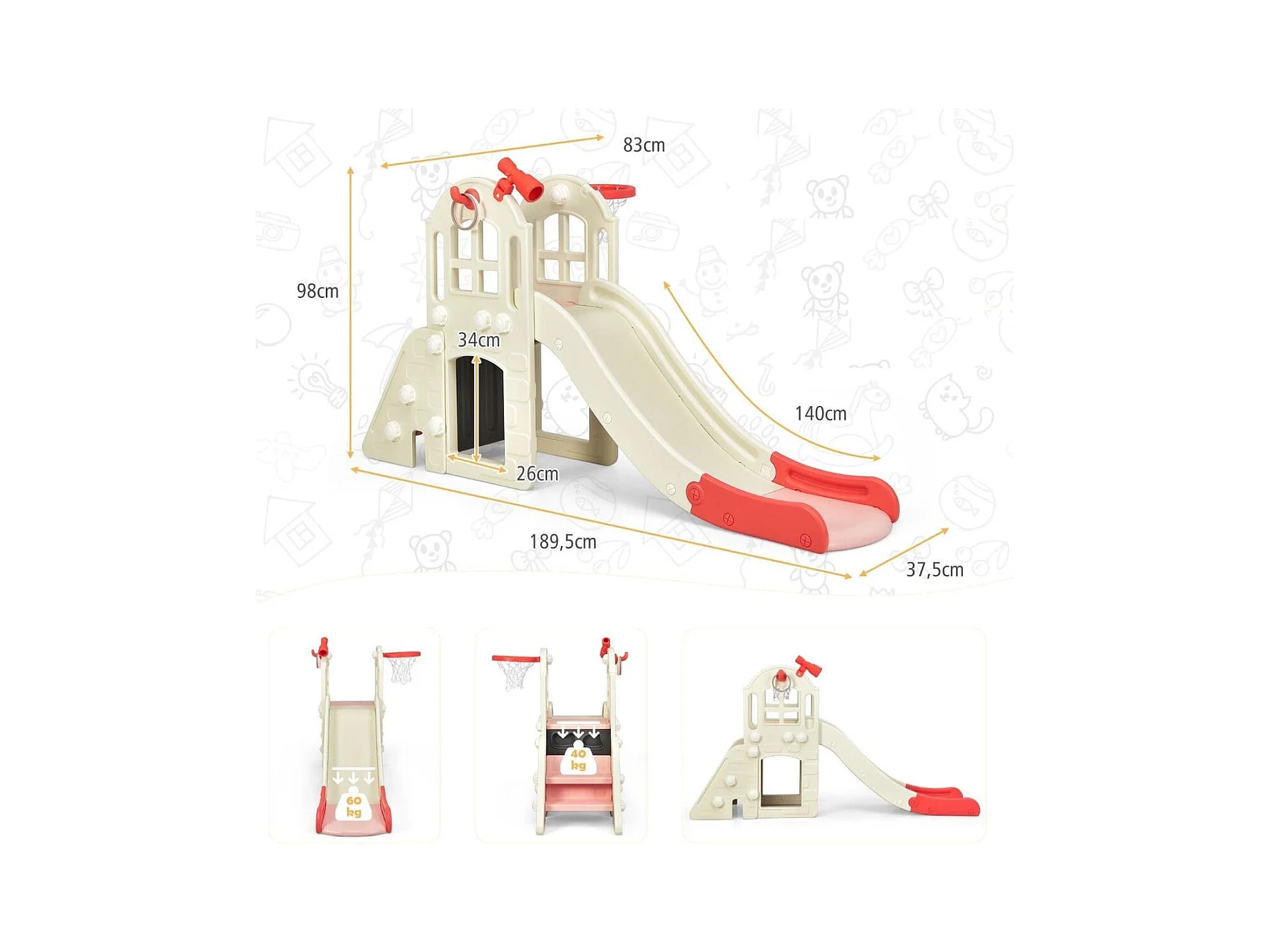 Kinderrutsche Kletterrutsche mit Basketballkorb Ball Ringwurf und Teleskop 189,5 x 83 x 98 cm Rosa