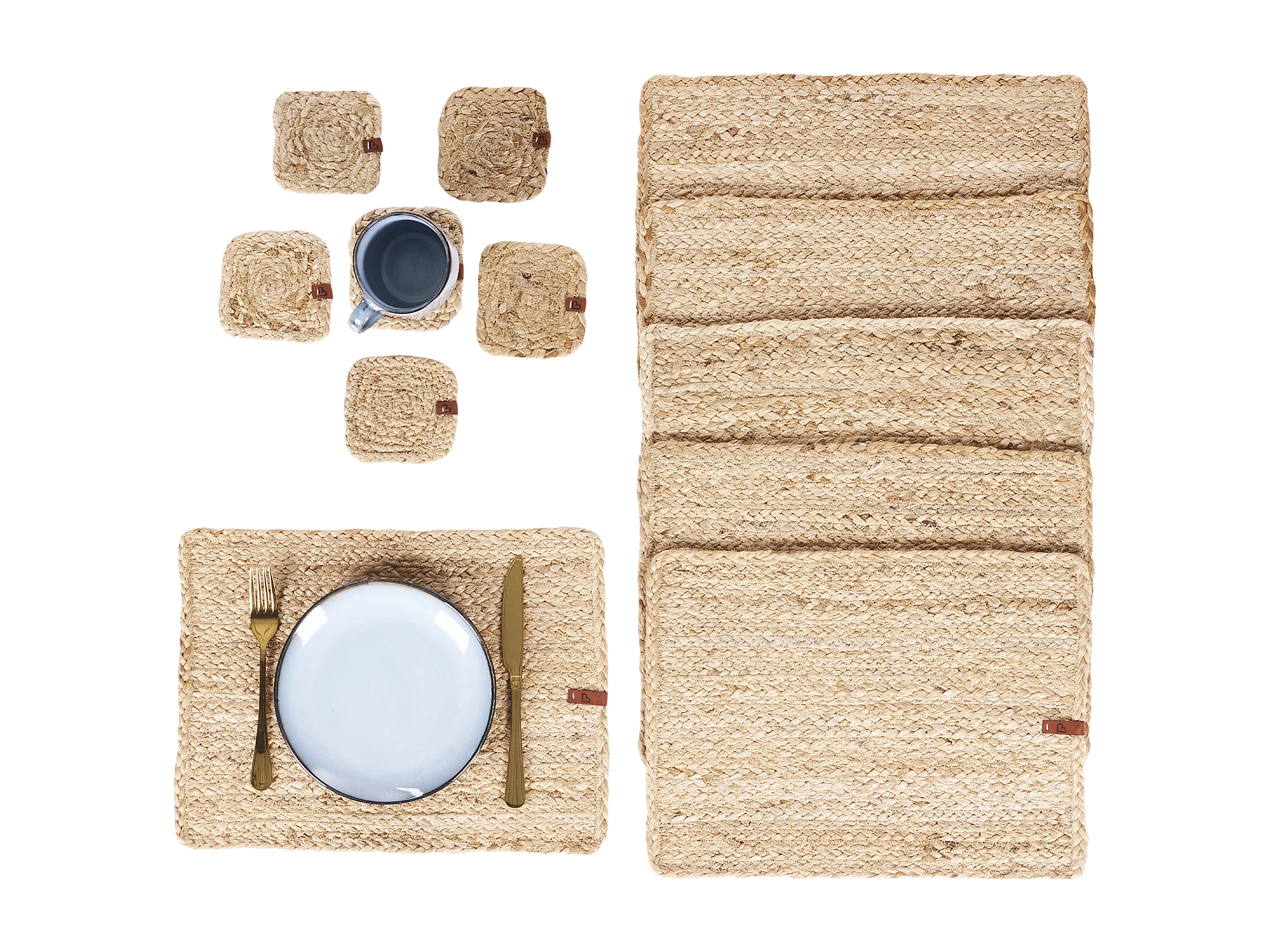 Tischset mit Untersetzern 12-teilig QUANDONG Naturfarben Jute