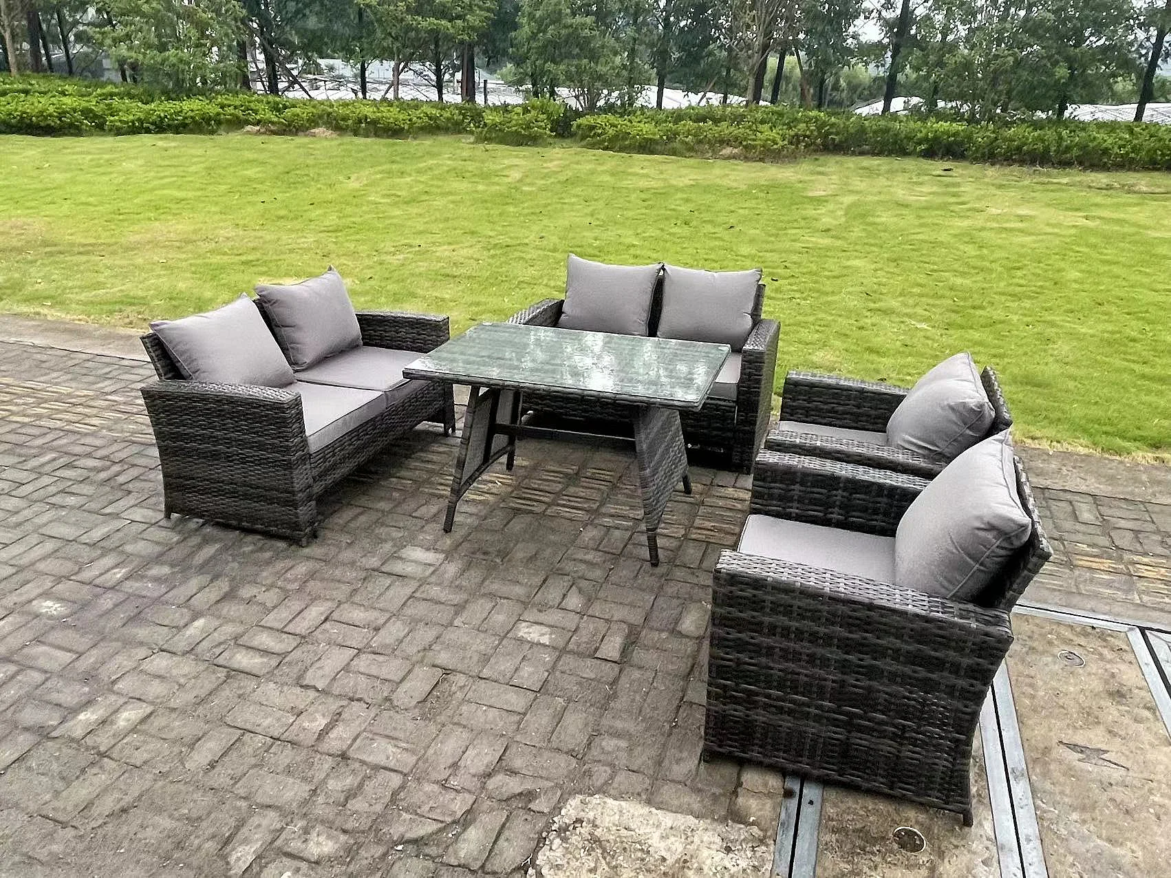 6-Sitzer Dunkelgrau Gemischt Hoher Rücken Rattan Sofa Esstisch Set Gartenmöbel Set