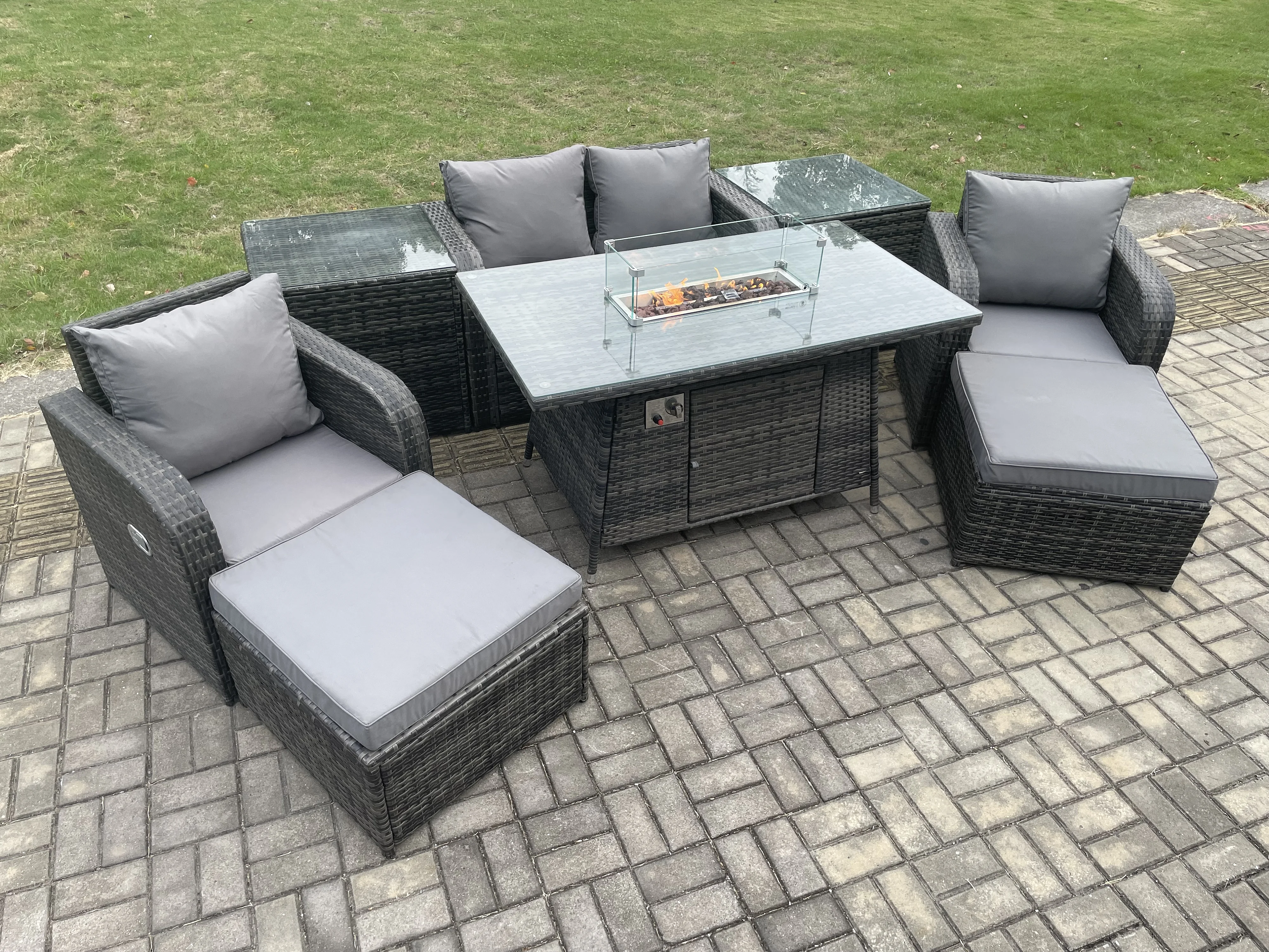 6-Sitzer Gartengarnitur Polyrattan mit Gas Feuerstelle