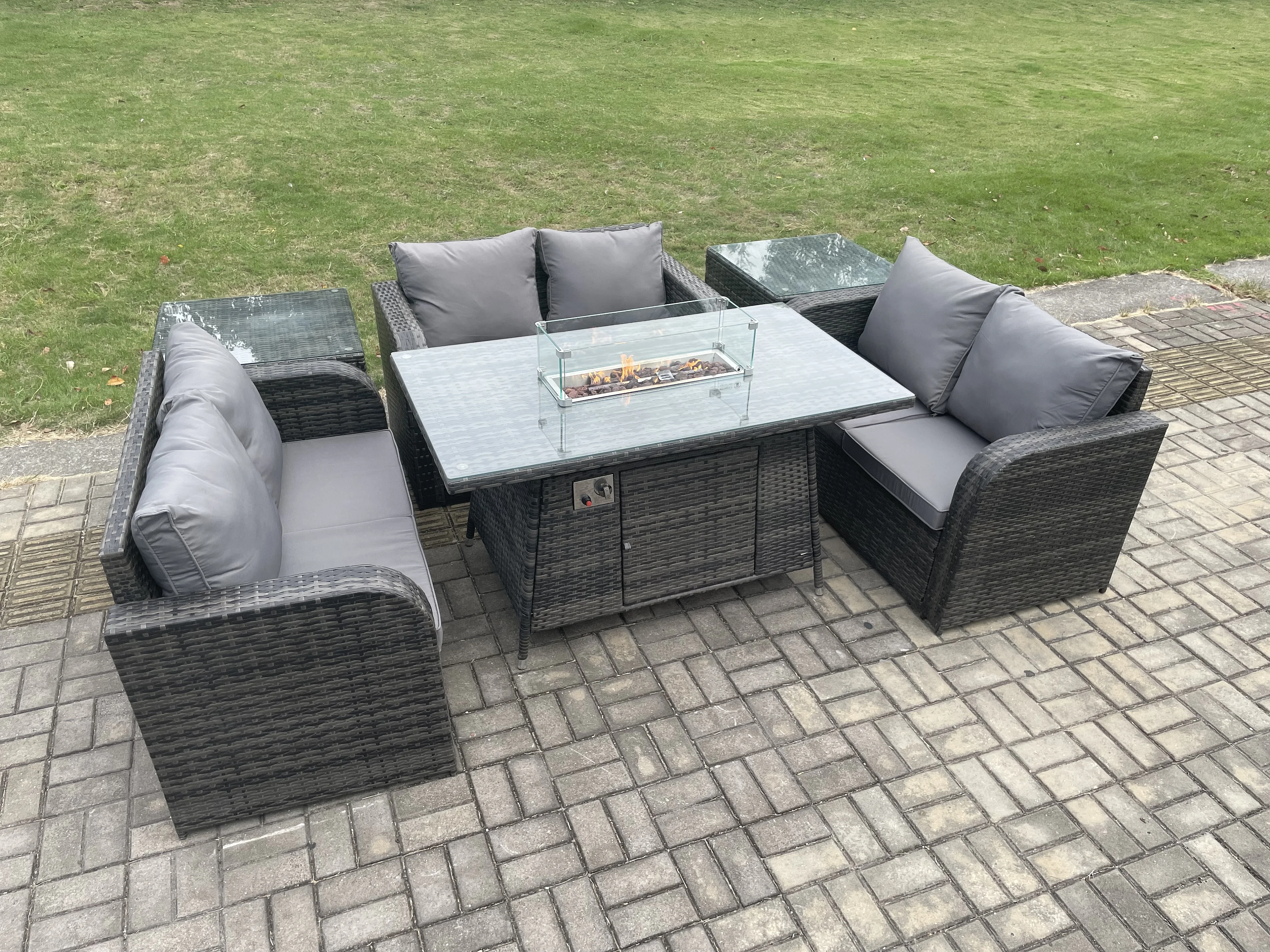 6-Sitzer Gartenmöbel im Freien Polyrattan Dunkelgrau