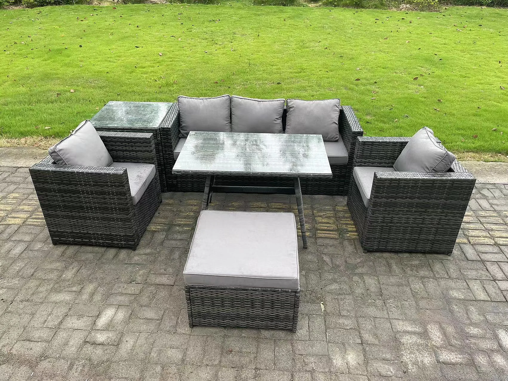 6-Sitzer Gartenmöbel Lounge Sofa Set mit Sofa Rechteckiger Esstisch 2 Sesseln Hocker Dunkelgrau Gemischt