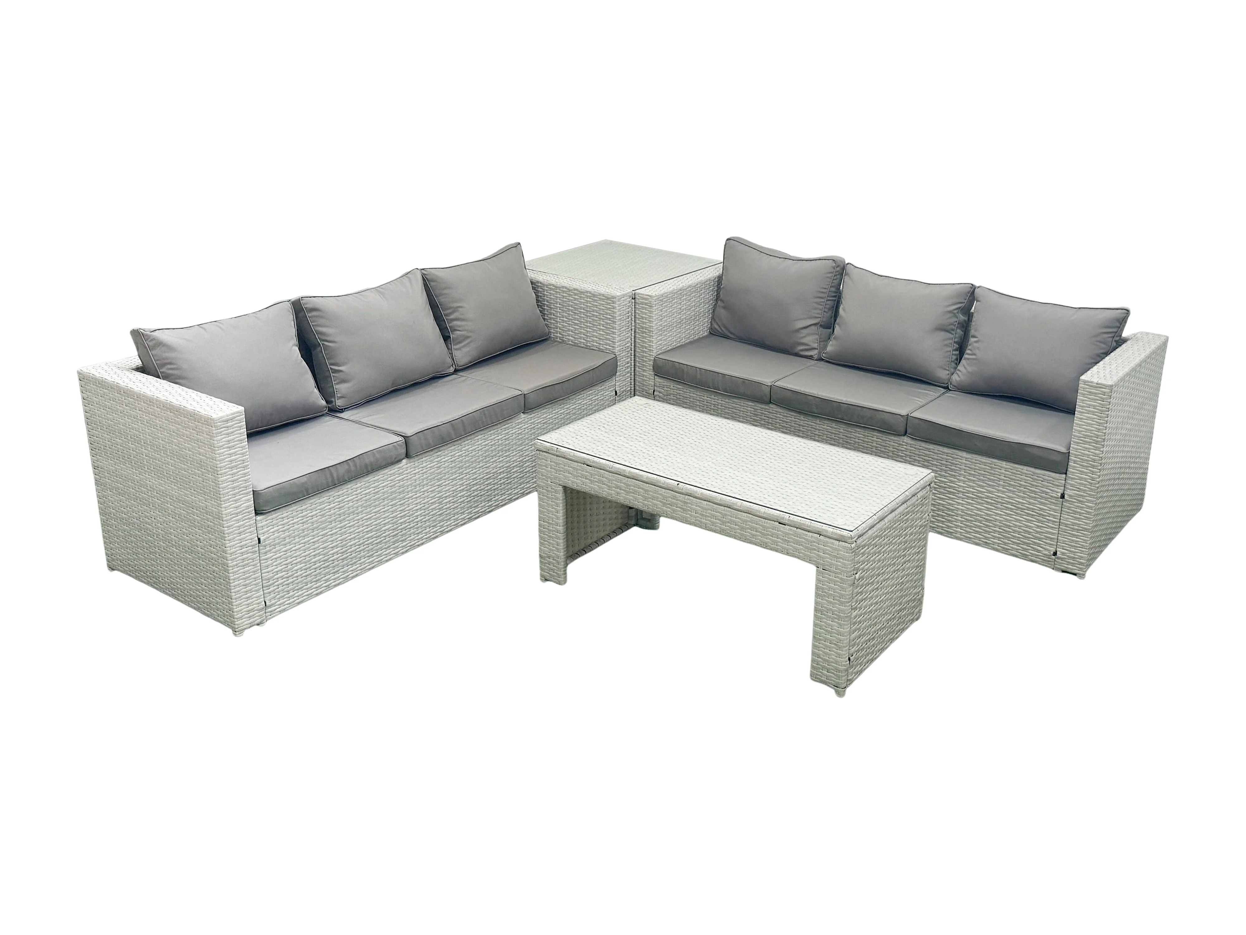 6-Sitzer Gartenmöbel-Set im Freien Polyrattan Garten Sofa Rechteckiger Couchtisch Set mit Beistelltisch Hellgrau gemischt