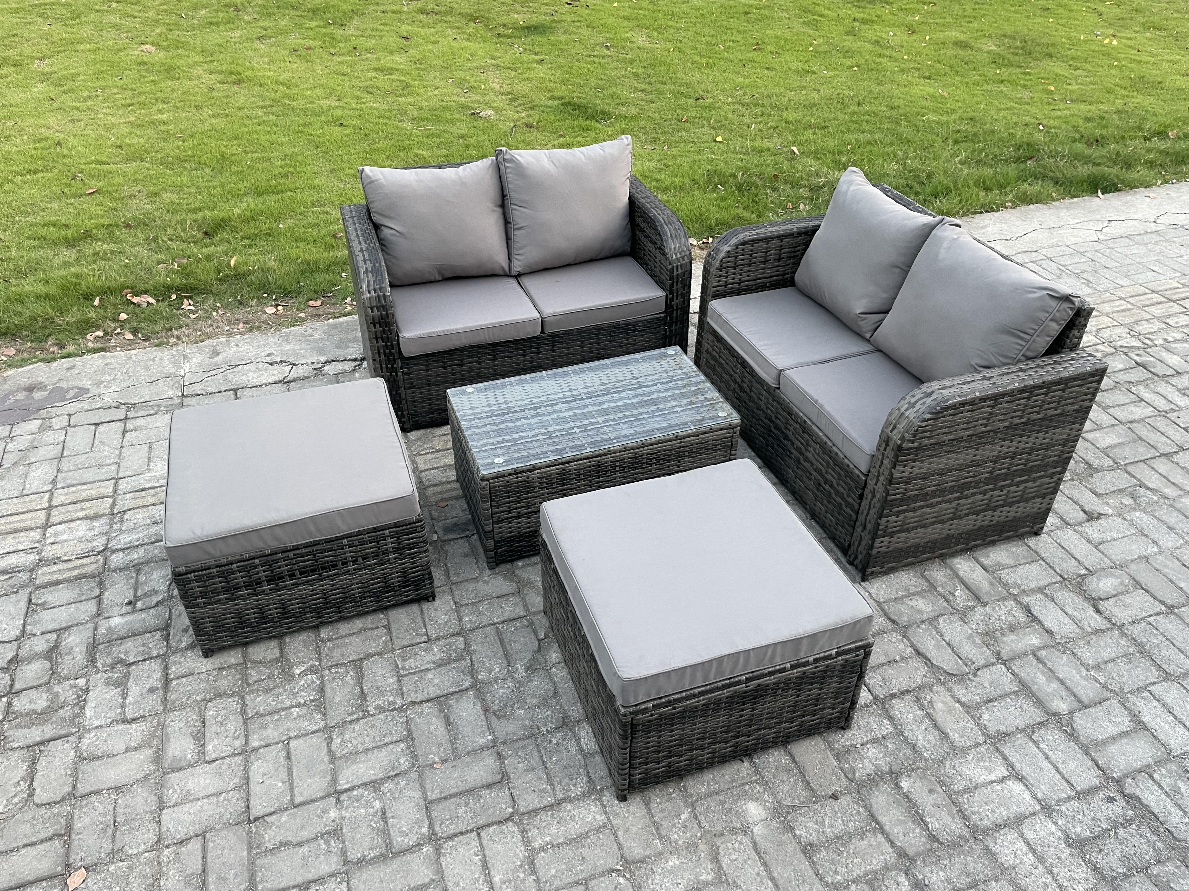 6-Sitzer Rattan Gartenmöbel Set mit Sofa Dunkelgrau
