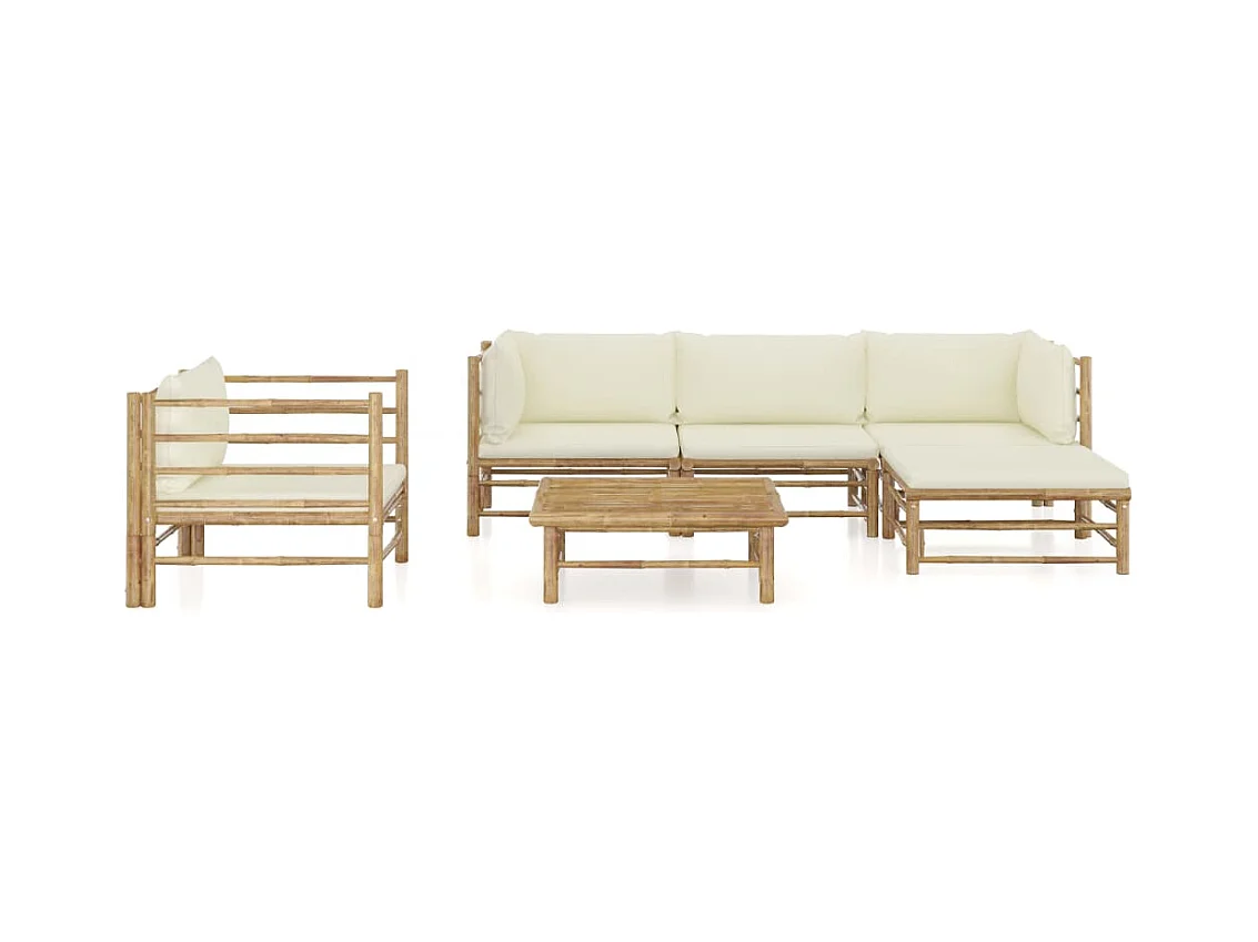 6-tlg. Garten-Lounge-Set mit Cremeweißen Kissen Bambus