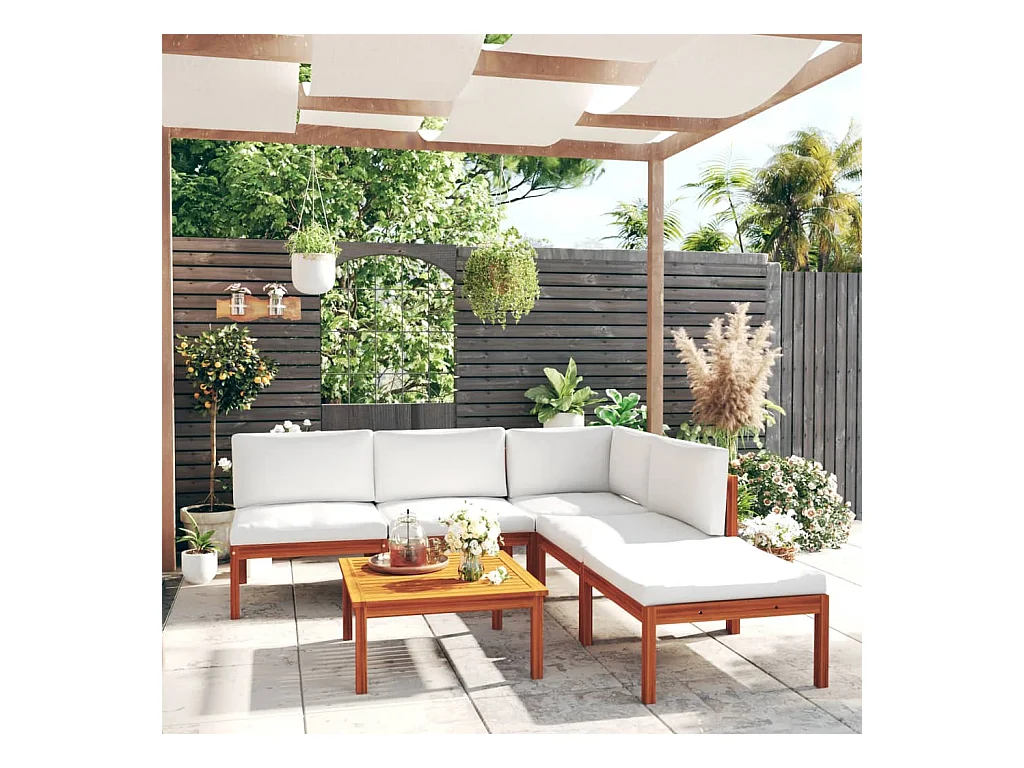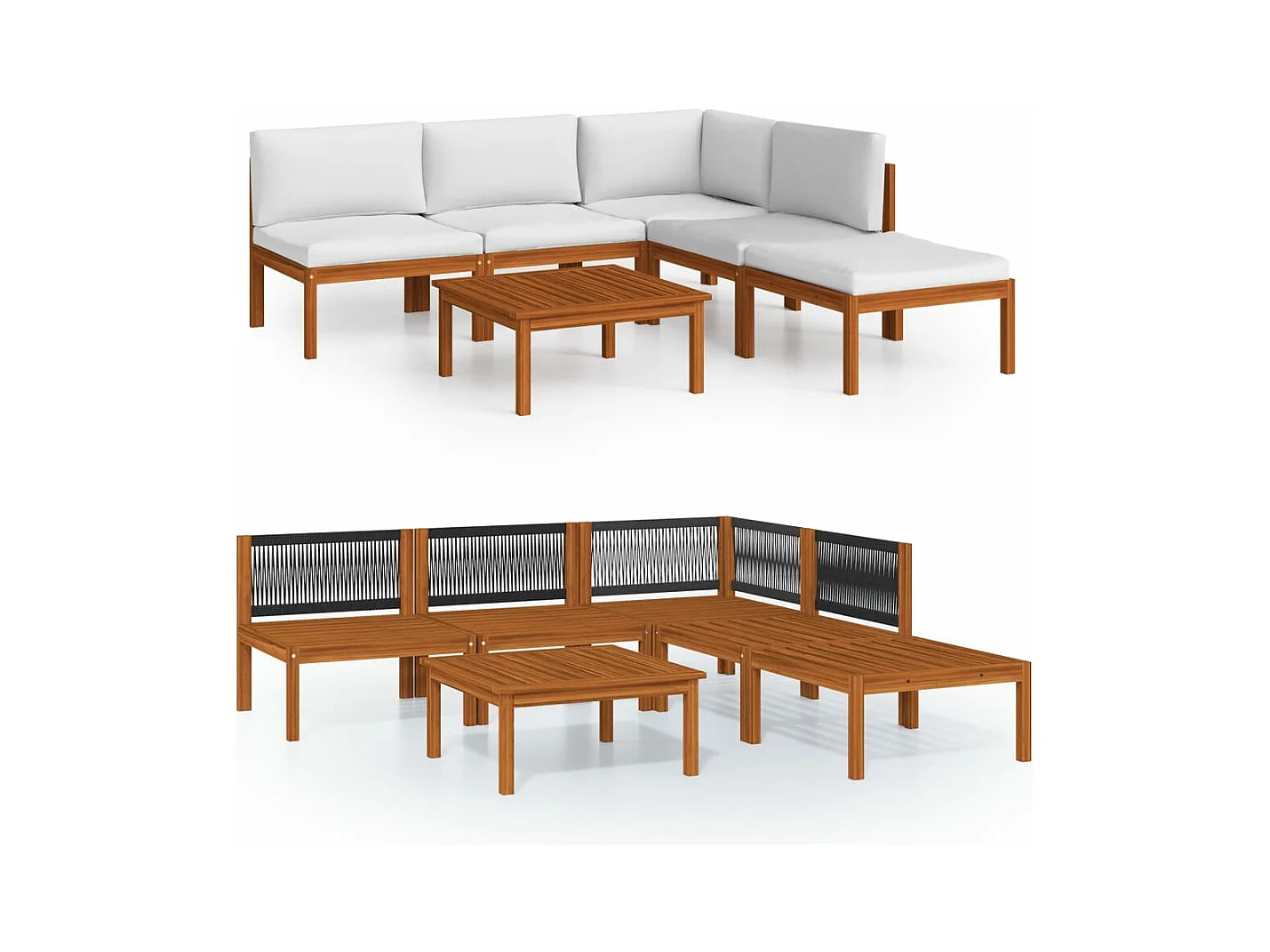6-tlg. Garten-Lounge-Set mit Kissen Cremefarbenes Holz Akazie & Seil