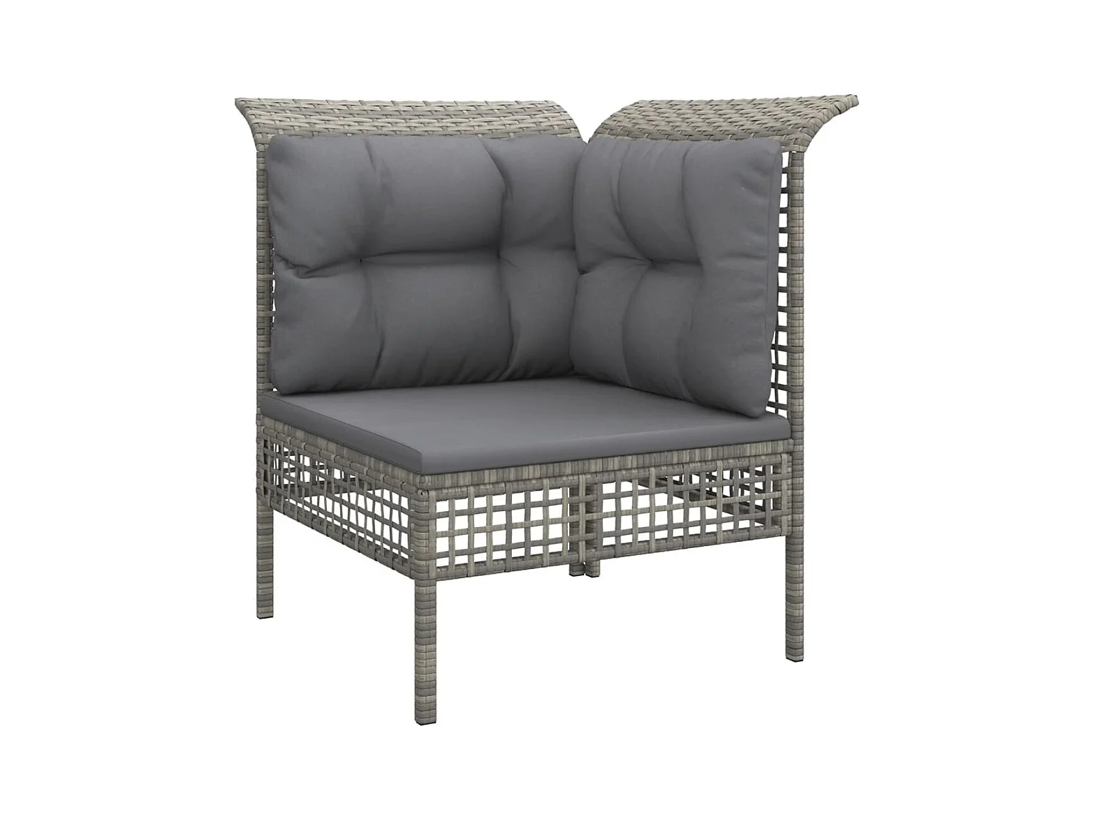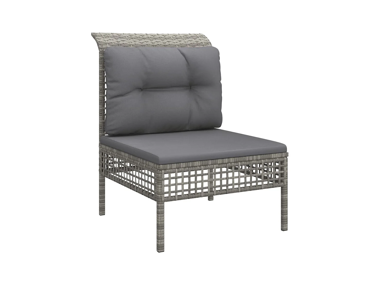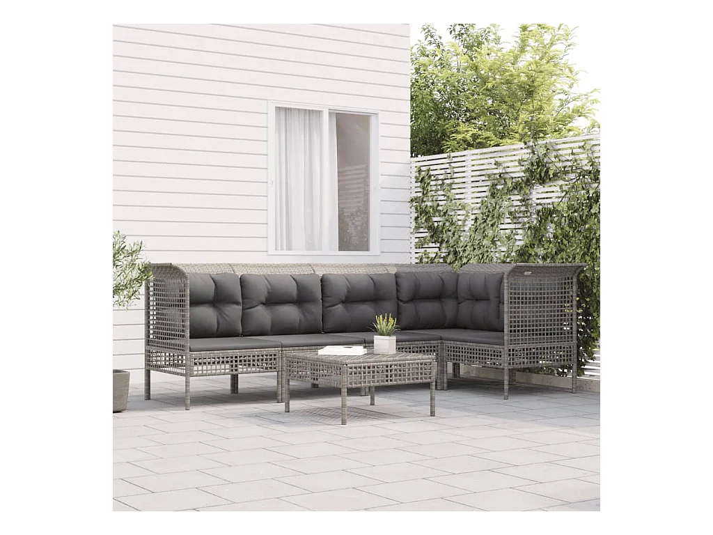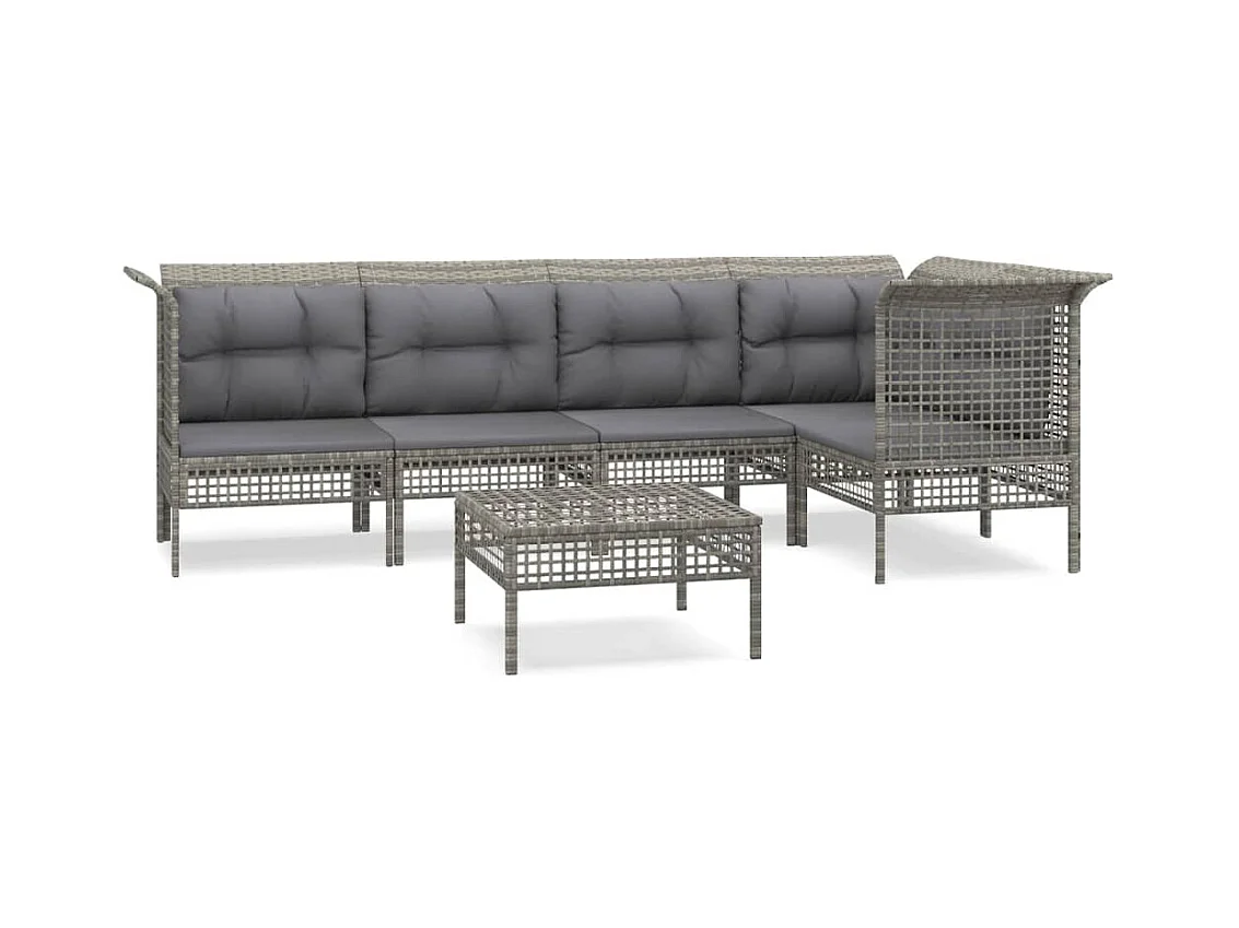 6-tlg. Garten-Lounge-Set mit Kissen Grau Poly Rattan