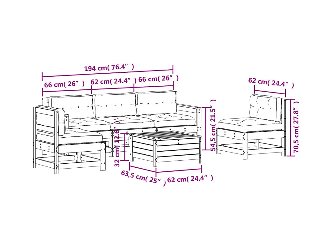 6-tlg. Garten-Lounge-Set mit Kissen Massivholz Douglasie
