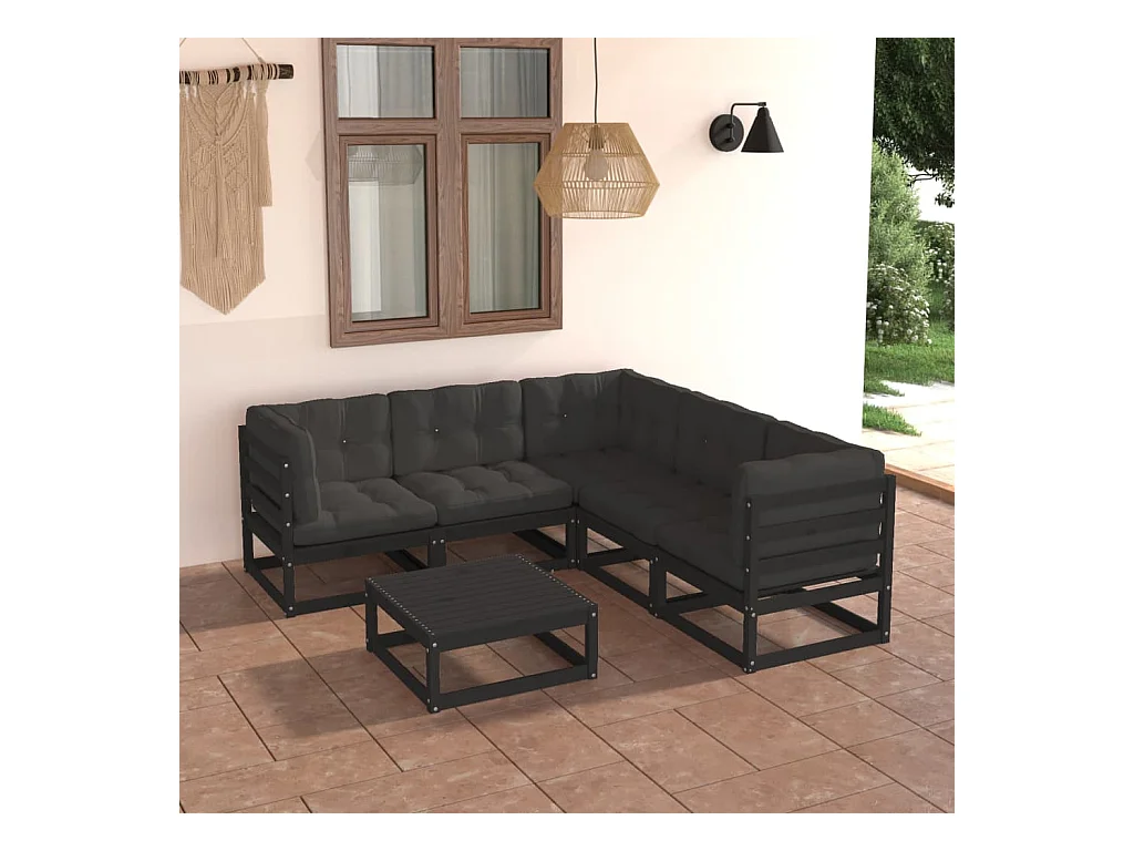 6-tlg. Garten-Lounge-Set mit Kissen Massivholz Kiefer