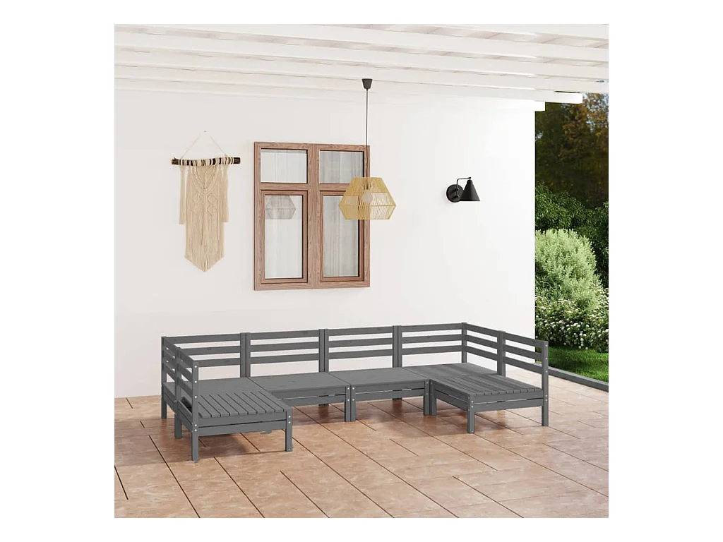 6-tlg. Garten-Sitzgruppe | Garten-Lounge-Set Grau Massivholz Kiefer -GKD641844