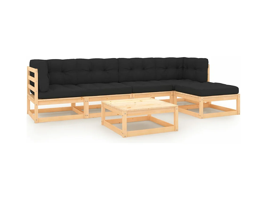 6-tlg. Garten-Sitzgruppe | Garten-Lounge-Set mit Kissen Massivholz Kiefer -GKD737937