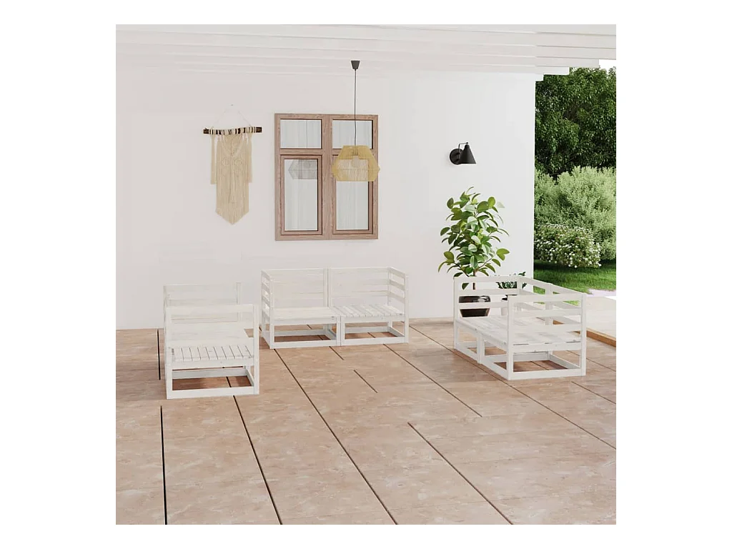 6-tlg. Garten-Sitzgruppe | Garten-Lounge-Set Weiß Massivholz Kiefer -GKD138859