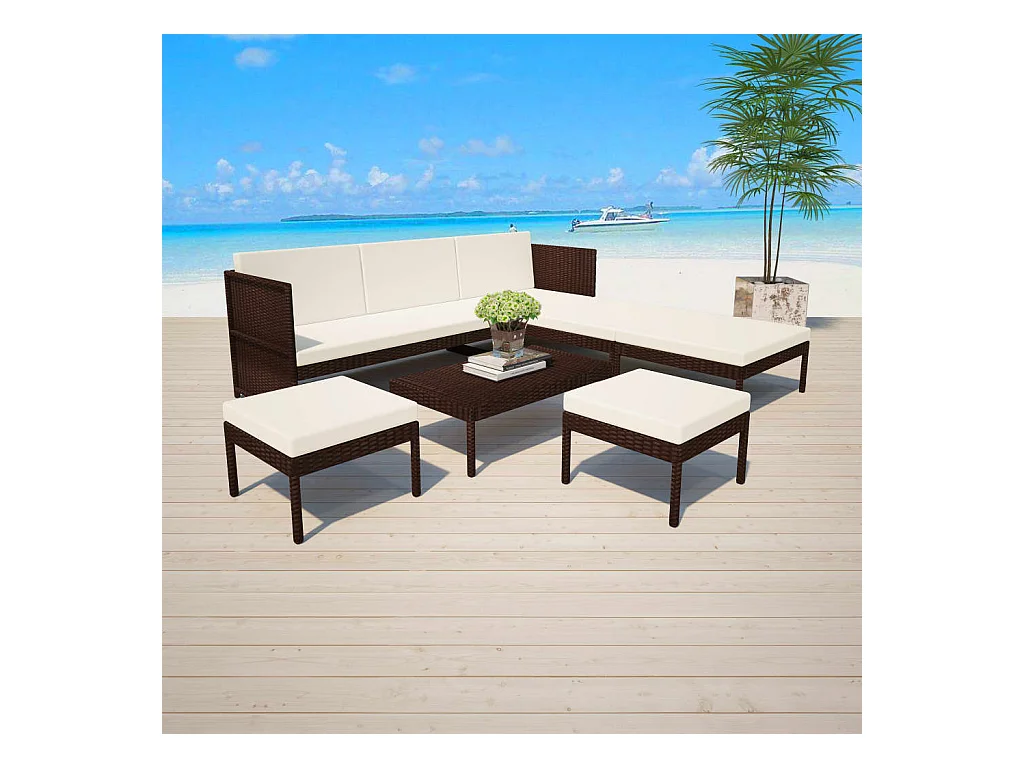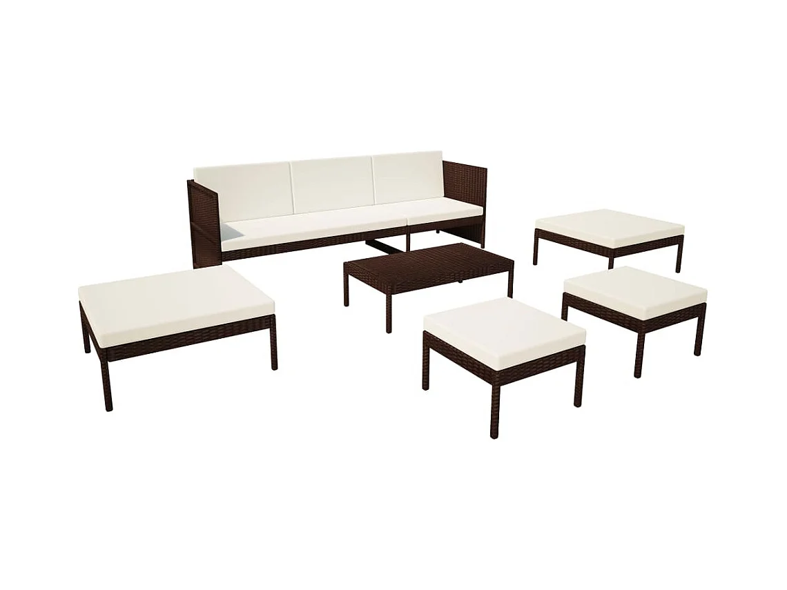 6-tlg. Garten-Sitzgruppe: Sofa + Tisch | Garten-Lounge-Set mit Auflagen Poly Rattan Braun -GKD420204