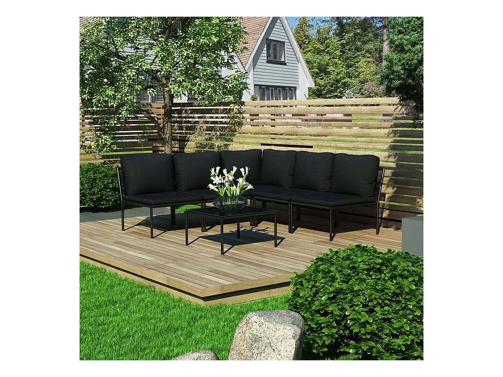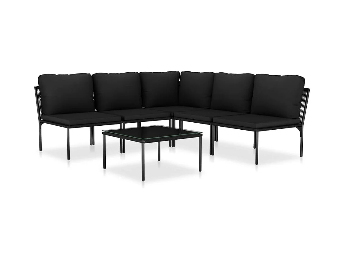 6-tlg. Garten-Sitzgruppe: Sofa + Tisch | Garten-Lounge-Set mit Auflagen Schwarz PVC -GKD924095