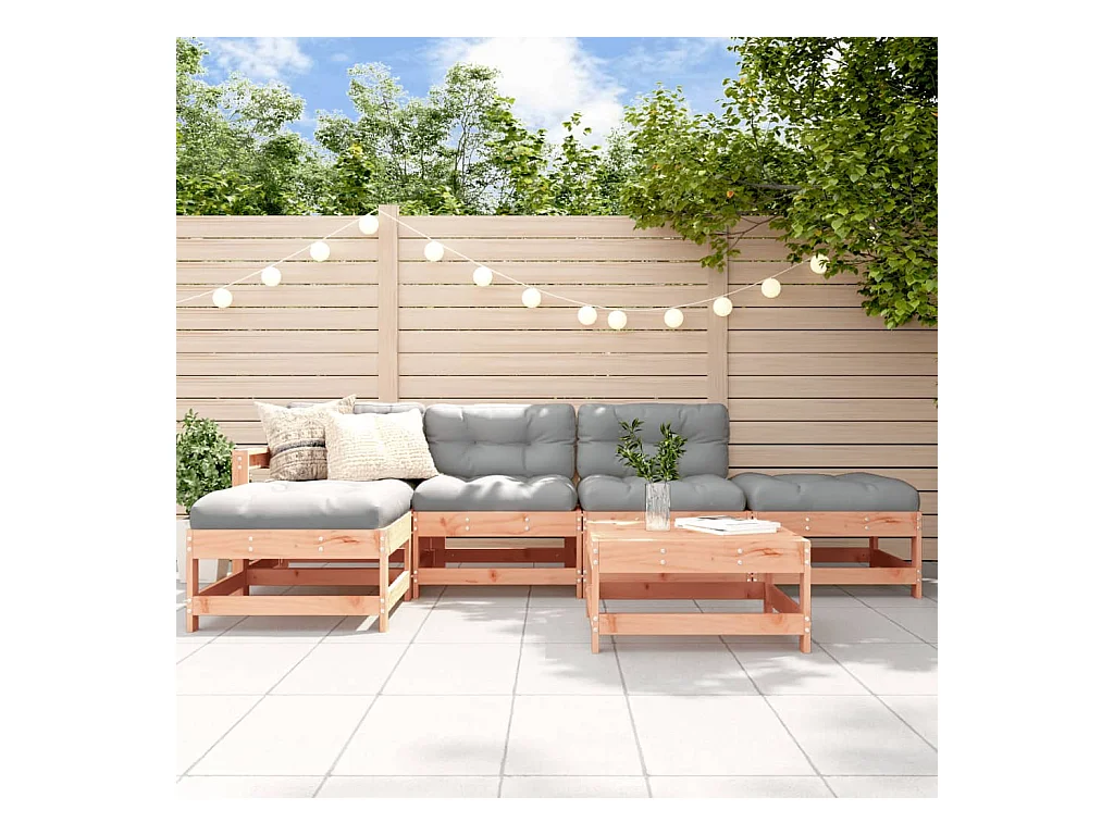 6-tlg. Garten-Sitzgruppe: Sofa + Tisch | Garten-Lounge-Set mit Kissen Massivholz Douglasie -GKD148543