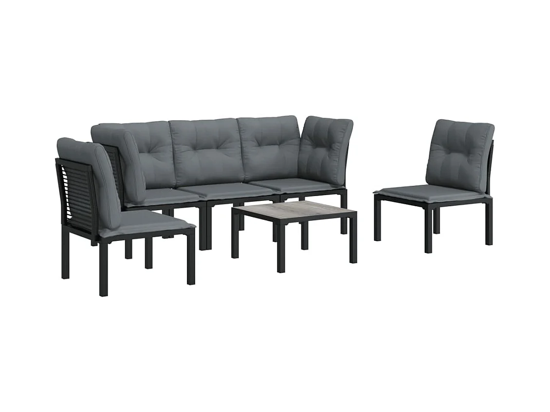6-tlg. Garten-Sitzgruppe: Sofa + Tisch | Garten-Lounge-Set Schwarz und Grau Poly Rattan -GKD465997