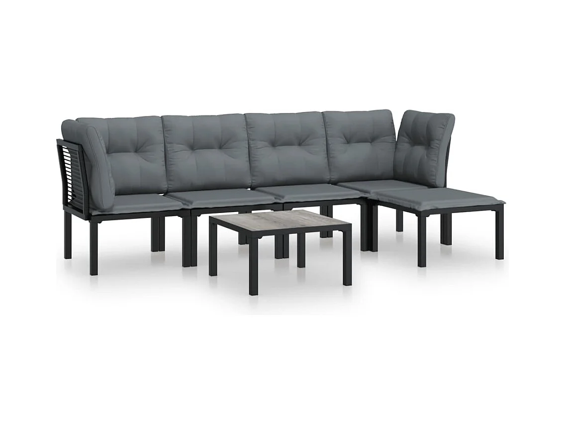 6-tlg. Garten-Sitzgruppe: Sofa + Tisch | Garten-Lounge-Set Schwarz und Grau Poly Rattan -GKD771136