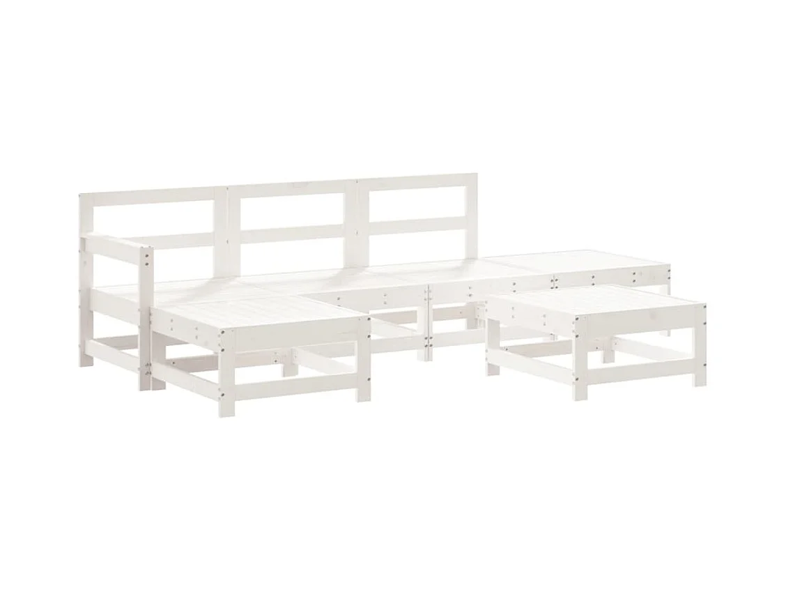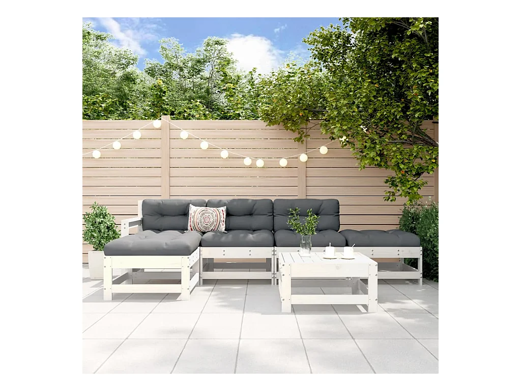 6-tlg. Garten-Sitzgruppe: Sofa + Tisch | Garten-Lounge-Set Weiß Massivholz Kiefer -GKD139508